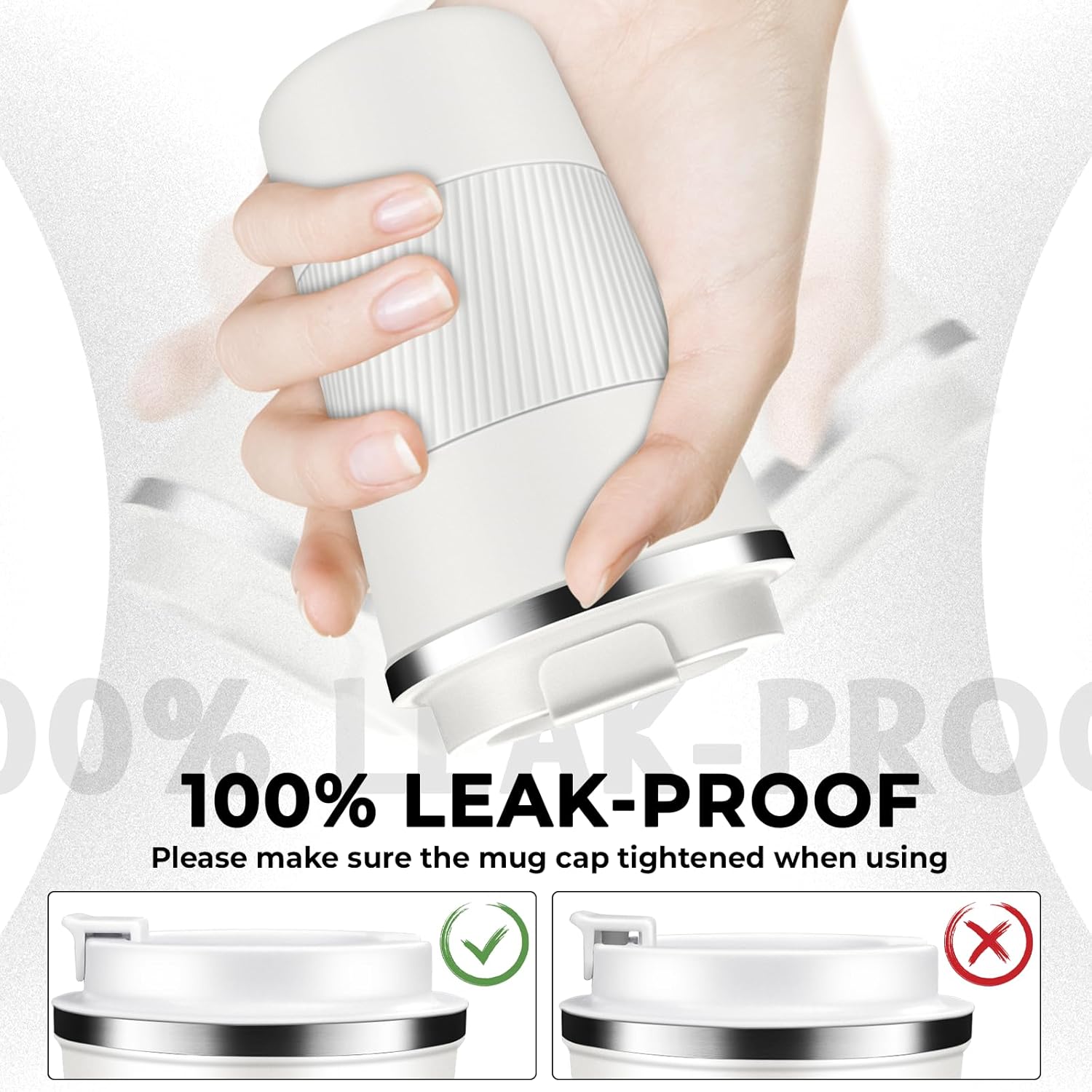 - Leak-Proof & Easy to Clean: The travel coffee mug features a secure screw lid with a sealing silicone strip and a convenient one-hand 180° flip-top snap for splash-free sipping, the wide mouth allows for easy filling and cleaning, comfort-grip silicone sleeve ensures a non-slip, secure hold, quiet base prevents slip