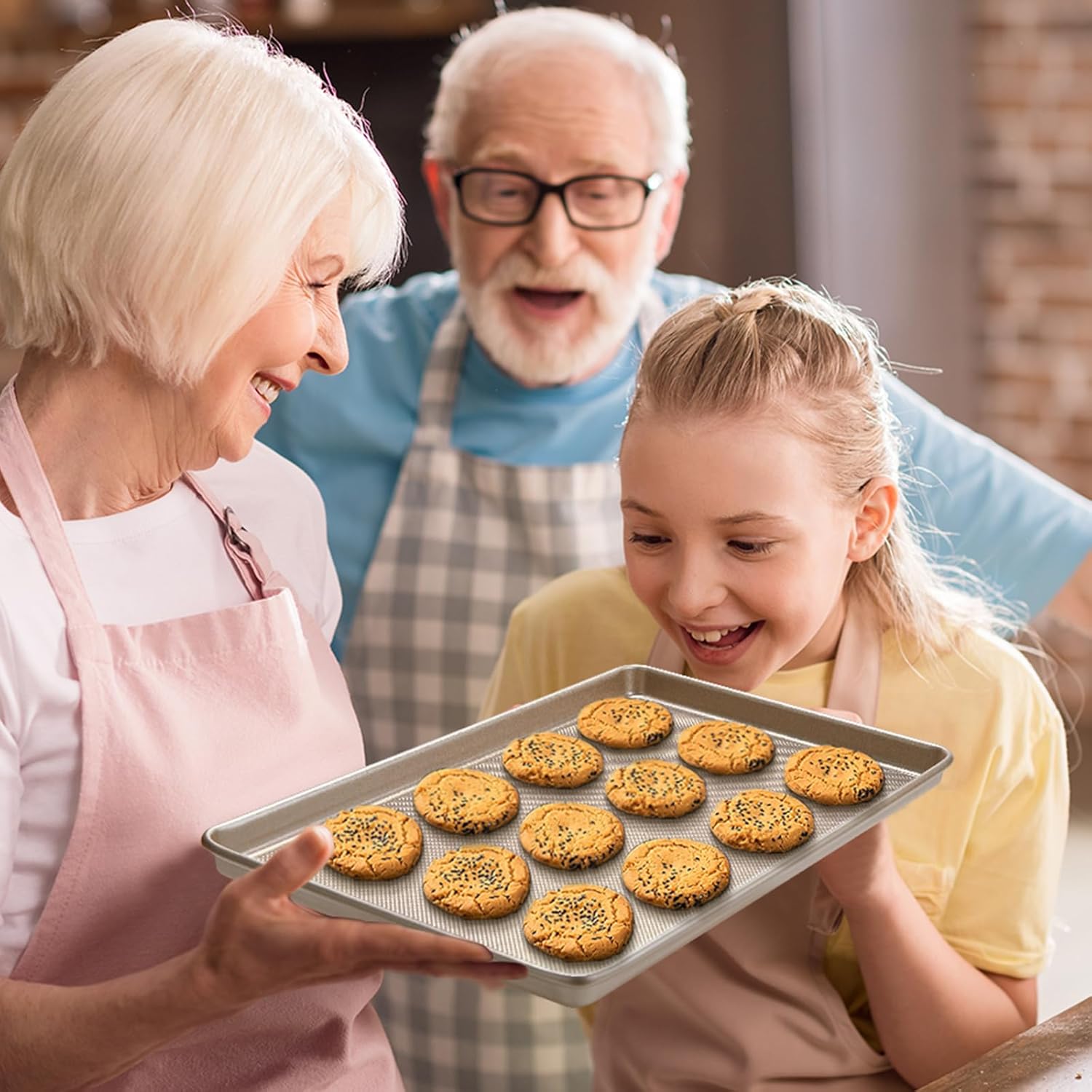 Baking Sheet Pan Set of 2, Cookie Sheets for Oven, Nonstick Half/Quarter/Jelly Roll Pans with Diamond Texture Pattern, 0.8mm Thick Heavy Duty Cookie Tray, Champagne Gold(17.5 * 11.8 * 1inch)