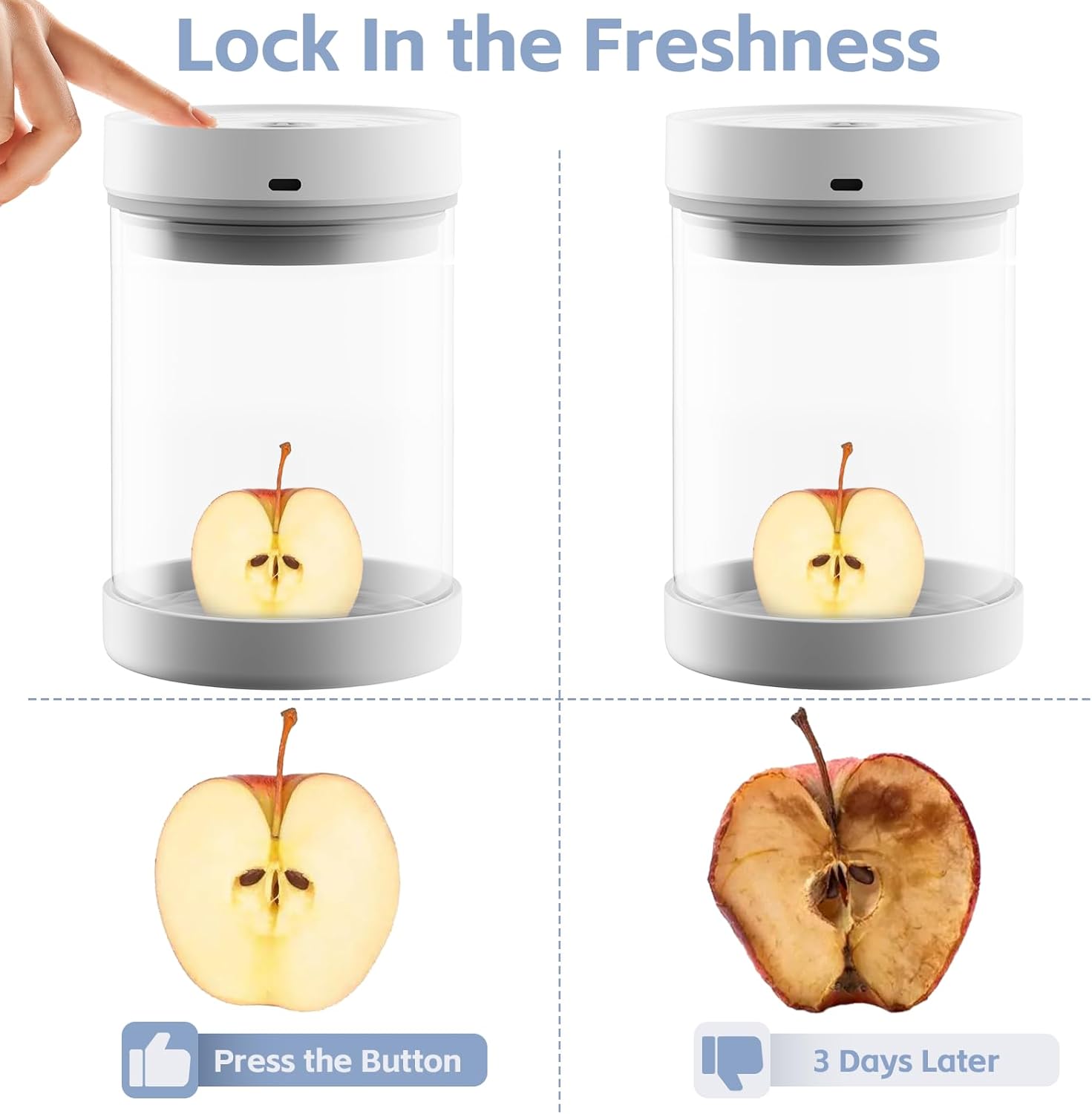 - EXTRA LONG STANDBY TIME: This automatic vacuum canister can automatically start the vacuum program when it monitors the air leakage, and it can pump 200-250 times (about 180 days) after a full charge. It can effectively help you keep the mellow aroma of coffee beans, the spice of spices, the crunch of nuts, and retain the flavor and color of food.