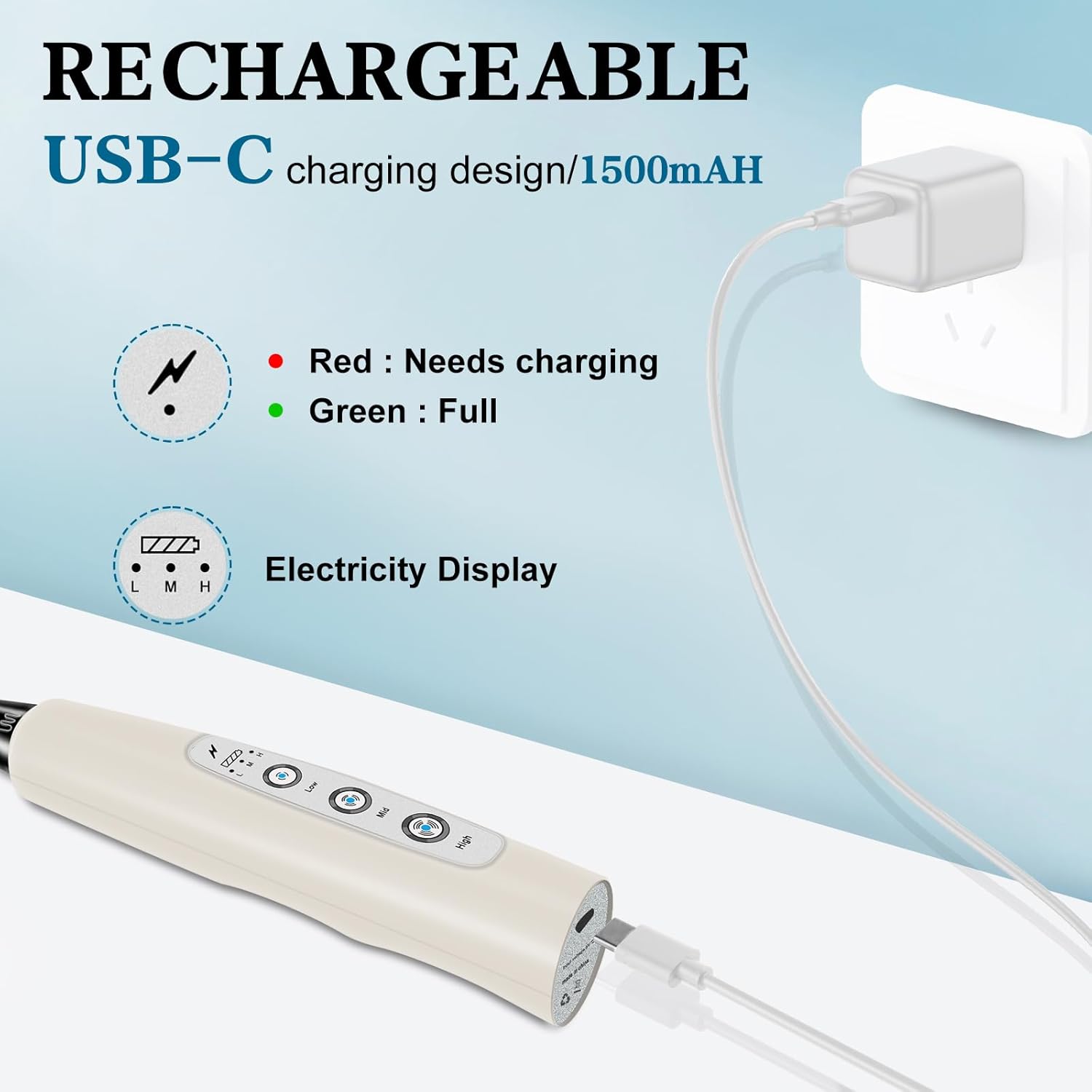 - USB-C Charging Long Battery Life: Our electric frother wand adopts USB charging design, which is more environmentally friendly and lighter than the battery type, allowing you to charge it anytime and anywhere. It can be used at home, in the office, or even taken out for camping. The built-in battery capacity is 1200mAh, which can be used several times a day after being fully charged. This drink mixer handheld also includes a charging indicator light that lights up red when charging and green when fully charged.