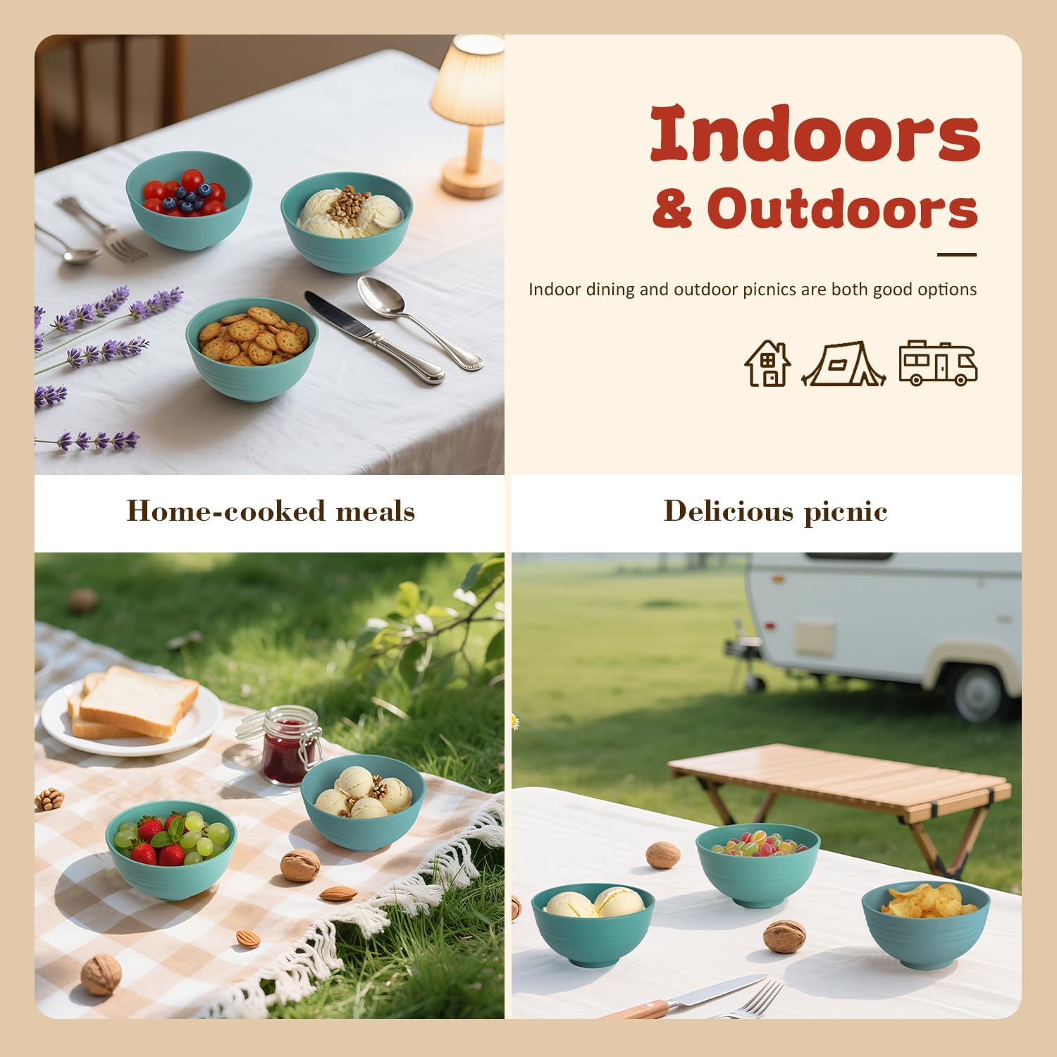 - ใ๐๐ป๐ฑ๐ผ๐ผ๐ฟ๐ & ๐ข๐๐๐ฑ๐ผ๐ผ๐ฟ๐ ๐จ๐๐ถ๐ป๐ดใ- These bowls are lightweight and unbreakable, featuring a smooth surface that makes cleaning effortless. Perfect for camping, RV trips, and outdoor adventures.