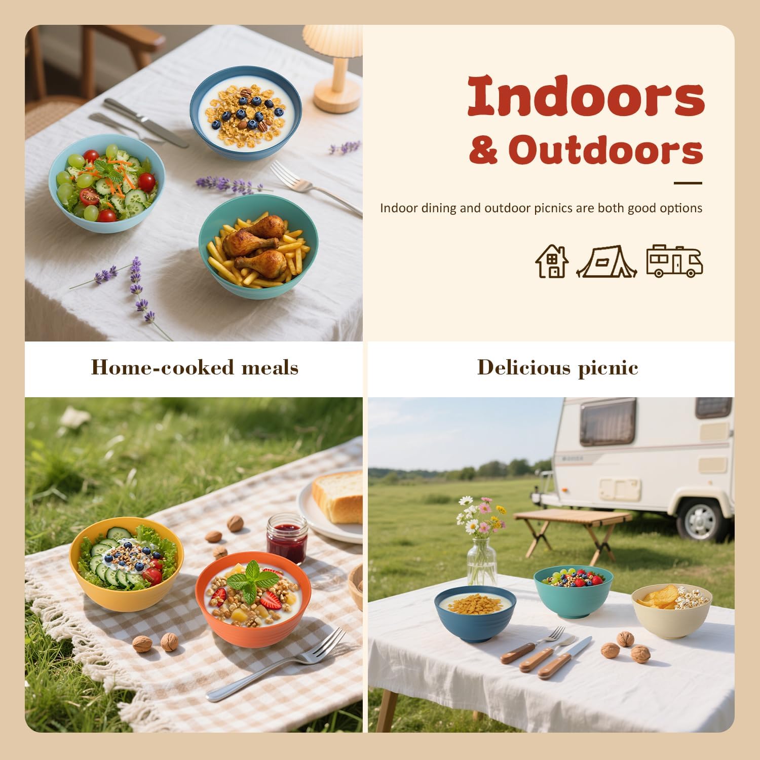 Wheat Straw Camping Bowls Sets of 6,Unbreakable 26oz Lightweight Bowls Sets for Outdoors Activity,Breakfast Bowls for Cereal and Salad.Vibrant Series