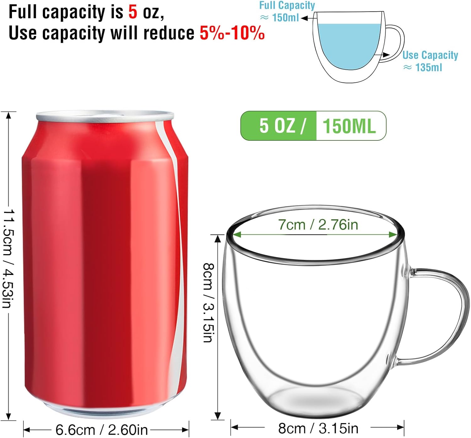 - EASY TO HOLD- The expresso cups are lightweight, the shape and size of the heat -insulation handles make the espresso glasses are easy to hold and avoid scalds.