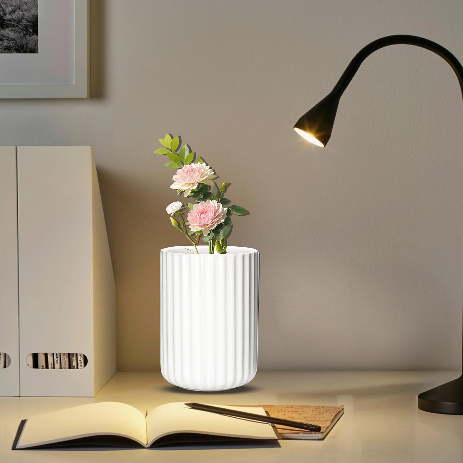 Ceramic Spoon Holder for Coffee Bar, Upright Tea Spoon Holder Cup, Coffee Stirrers Straws Stir Stick Holder, White Fluted Surface