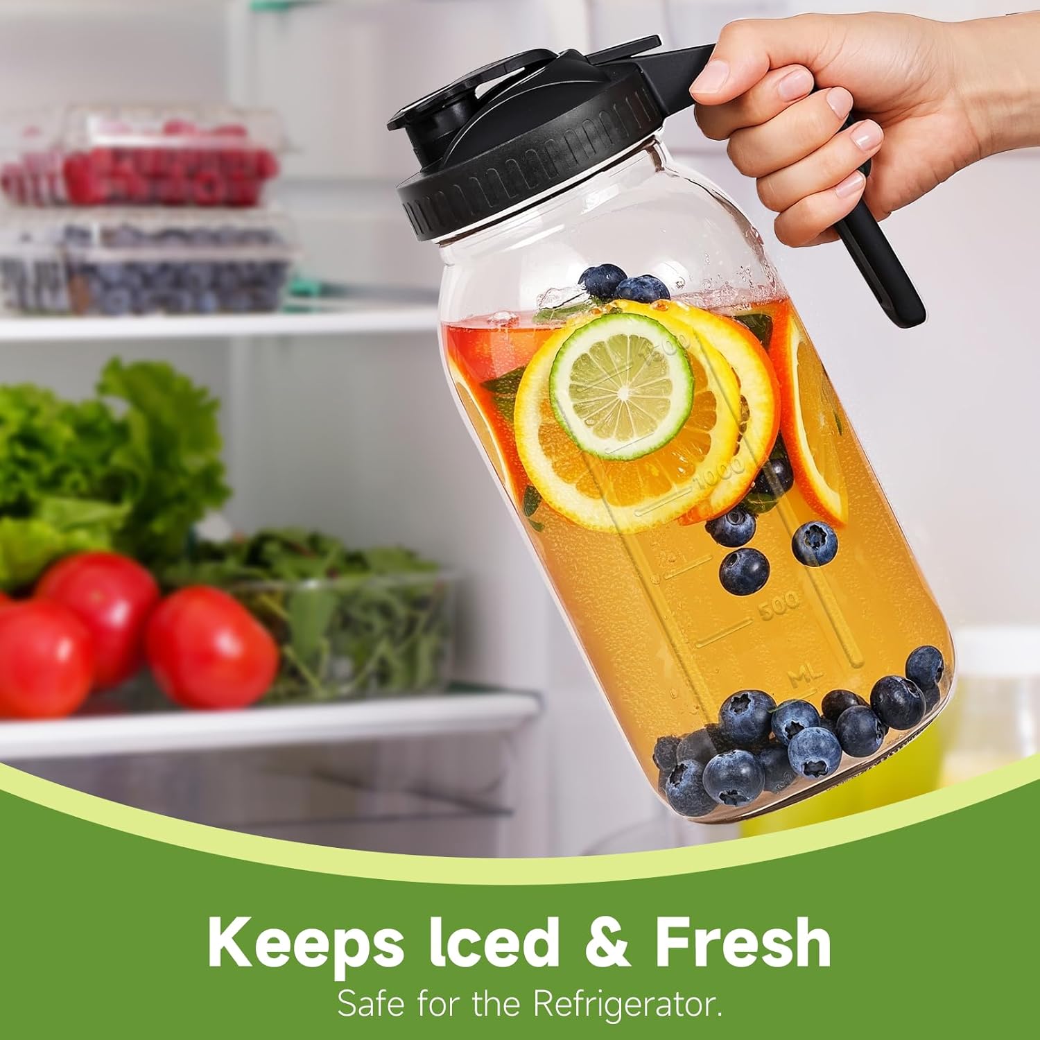 - Leak-Proof Airtight Lids – Preserve Freshness:Each pitcher comes with a secure lid featuring a food-grade silicone seal. Keep your drinks fresh and prevent spills, whether stored upright or tilted in the fridge.