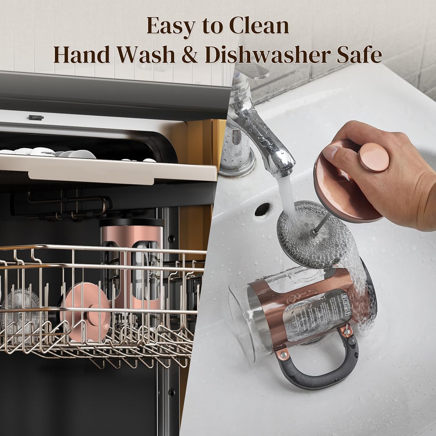 - Easy to Clean: Designed for hassle-free cleanup, the glass carafe disassembles easily for handwashing, while key components like the plunger and filter are dishwasher-safe—ensuring a thorough, convenient clean after every brew