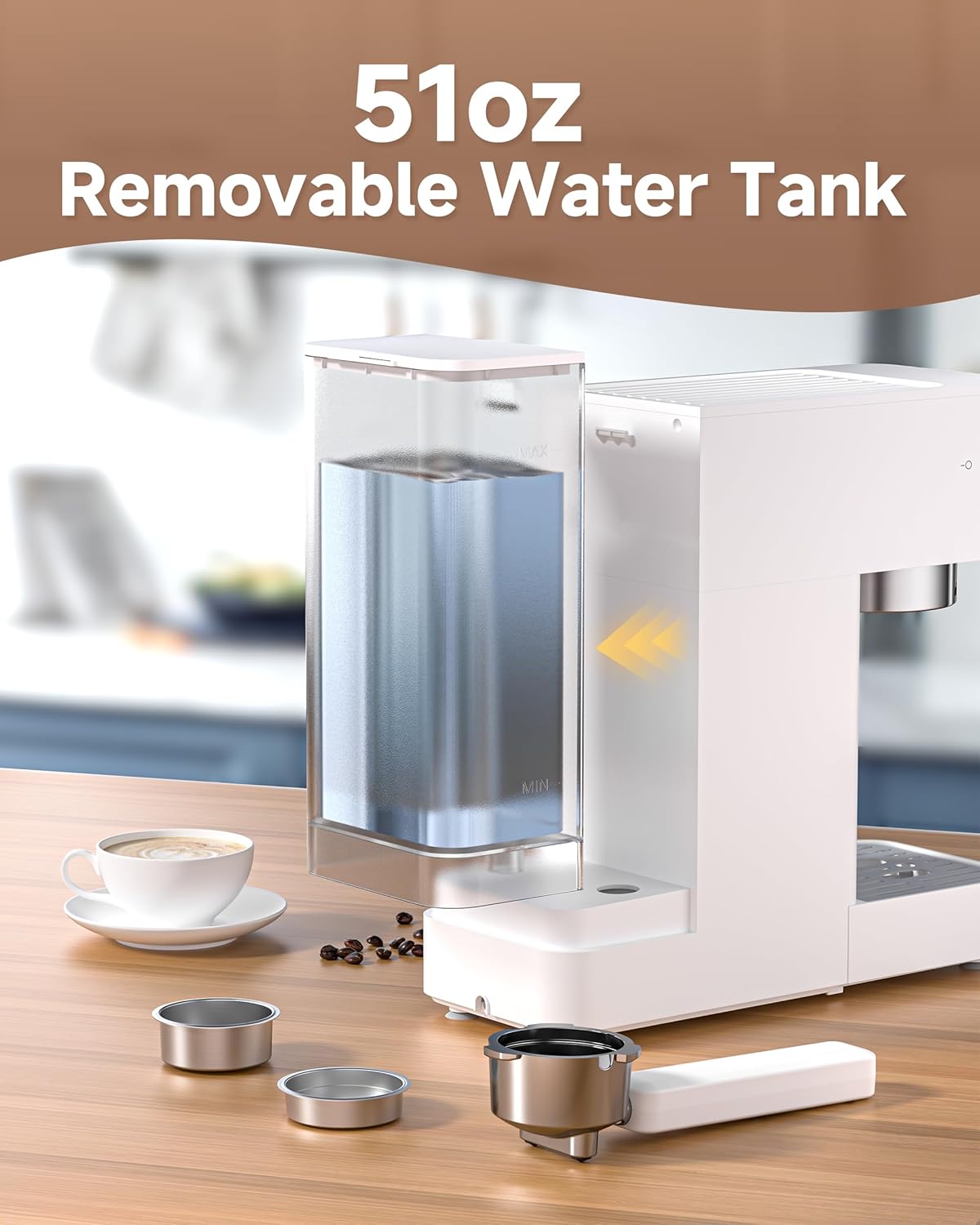 - Professional 20 Bar Pressure System - Italian pump delivers 20Bar high pressure for richer crema and bolder flavor than low-pressure machines, perfect for crafting café-quality espresso at home