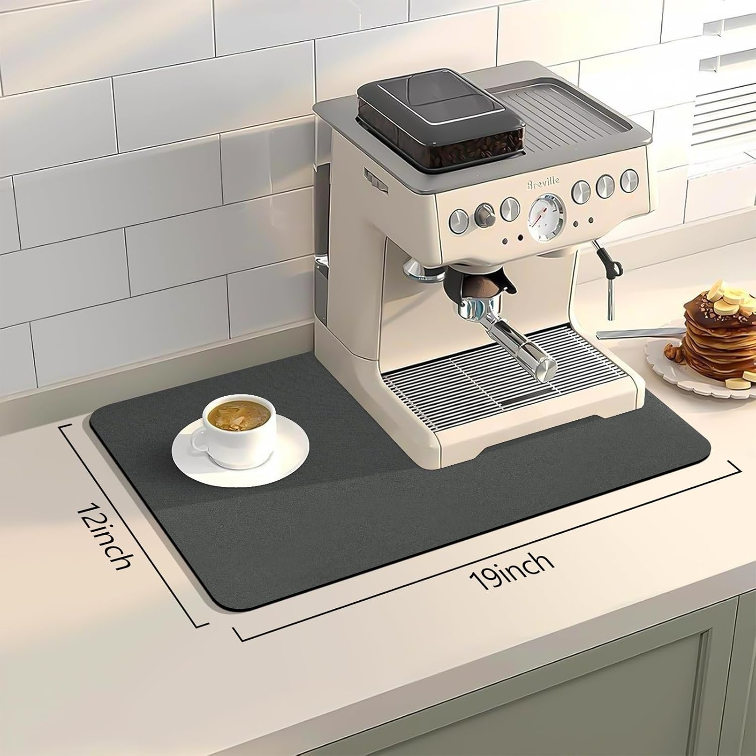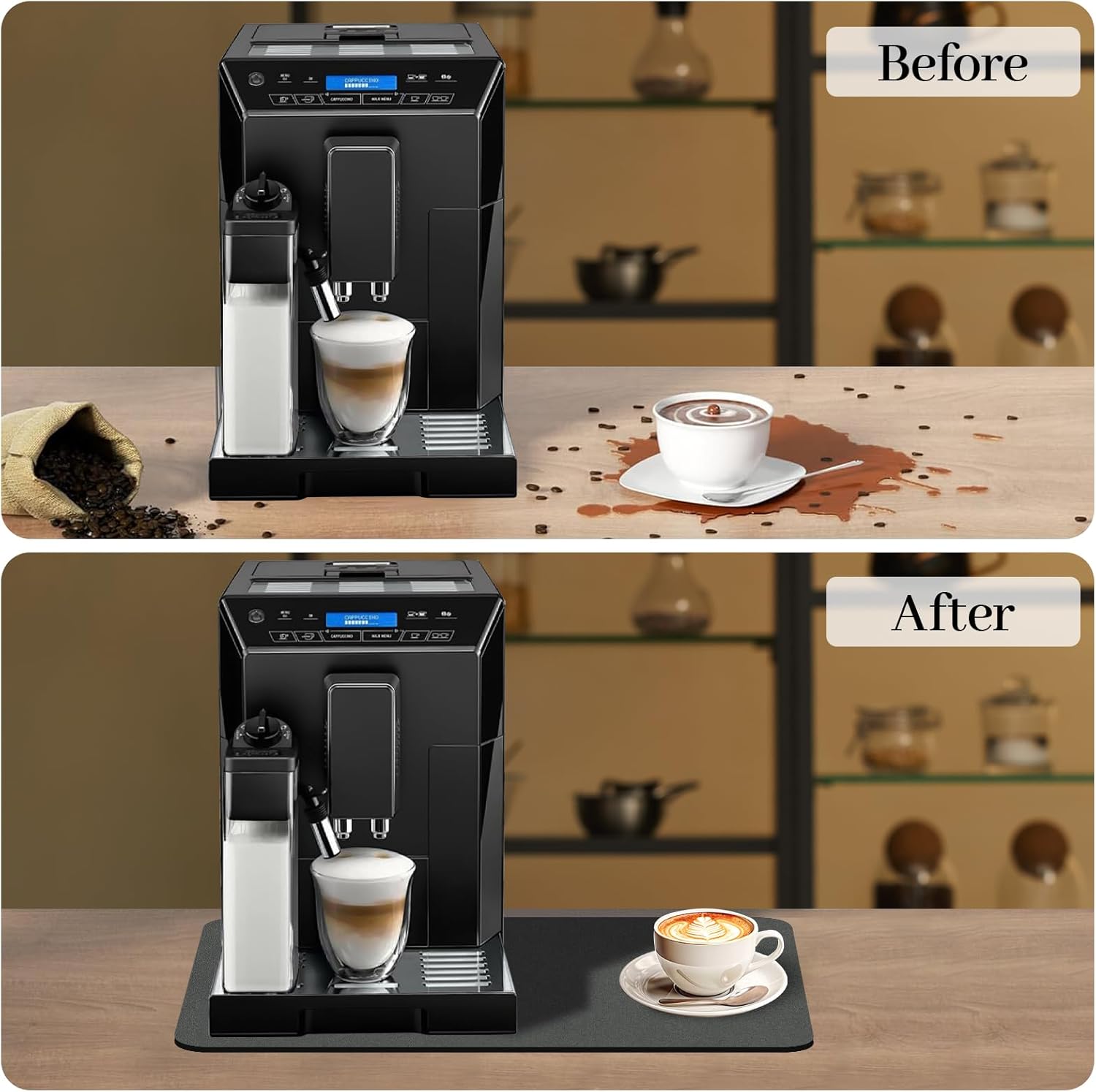 - 【Coffee Maker Mat For Countertops】Keep your coffee maker and countertops clean from spills with a coffee mat. This coffee bar mat protects your kitchen countertop surfaces from coffee splashes or coffee bean stains and can avoid the trouble of cleaning the countertops.