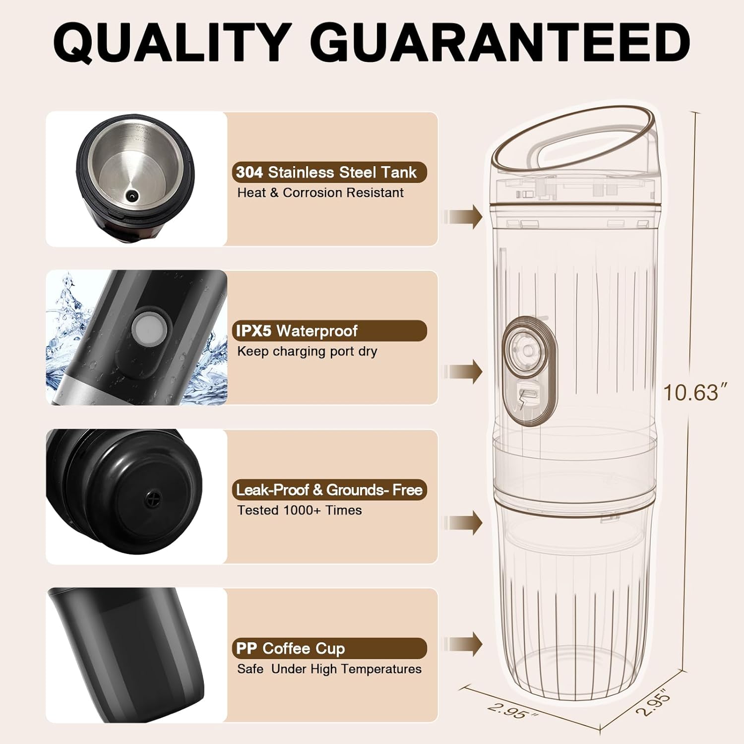 - 【Quality Assurance】The coffee machine features a water tank made of 304 stainless steel and a coffee cup made of food-grade PP material, ensuring no harmful substances are released at high temperatures. It has undergone thousands of tests to guarantee no water or coffee powder leakage. The device is IPX5 waterproof (please avoid getting water into the charging port) and built with a durable, stable body. If you encounter any issues during use, feel free to contact us anytime.