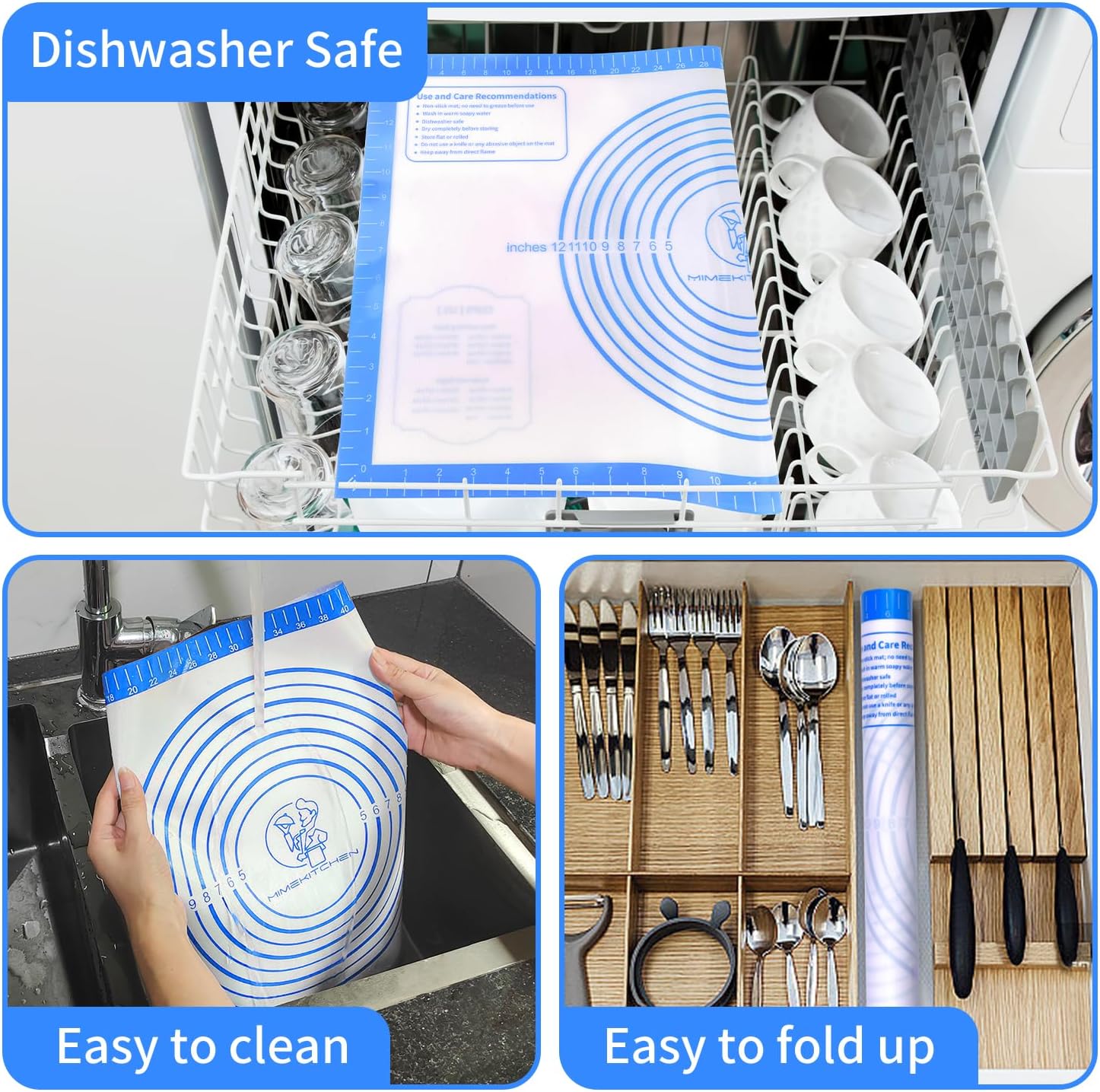 - 【Non-stick Pastry Mat】:The non-stick working surface don't need flour to prevent sticking, the dough will slide, turn and roll easily! Even if grease or dough sticks to the surface, baking mat can be easily cleaned up. The non-slip bottom keeps the silicone mat staying in place on countertops well and won't slip and slide around.