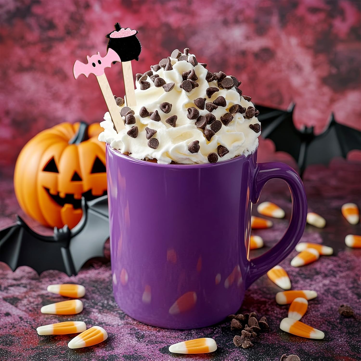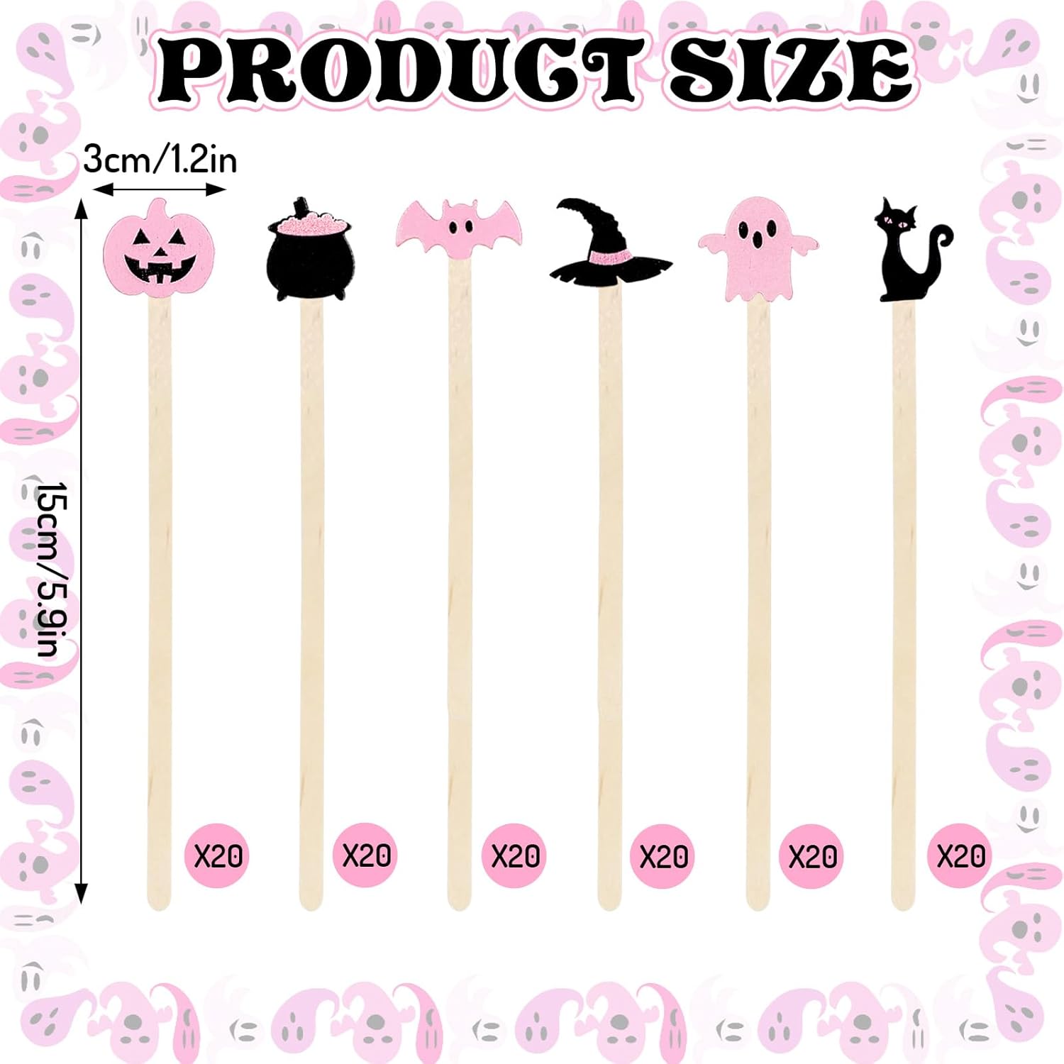 - CUTE DESIGN: The coffee stirrers are designed with cute bat, ghost, pumpkin, black cat, etc., mainly adopt the pink-black hue, adorable and playful, nice addition to the Halloween table setting