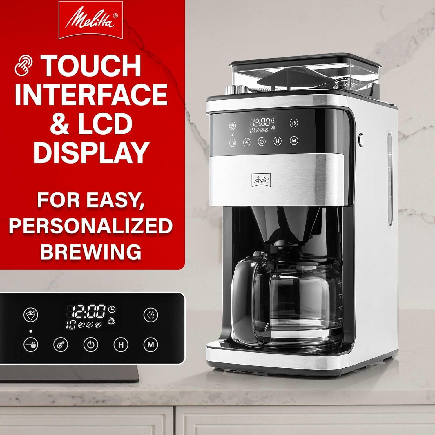 Melitta® Aroma Fresh™ Plus 10-Cup Automatic Drip, Programmable Coffee Maker with built in Burr Coffee Grinder, 5-Pack Coffee Filters included