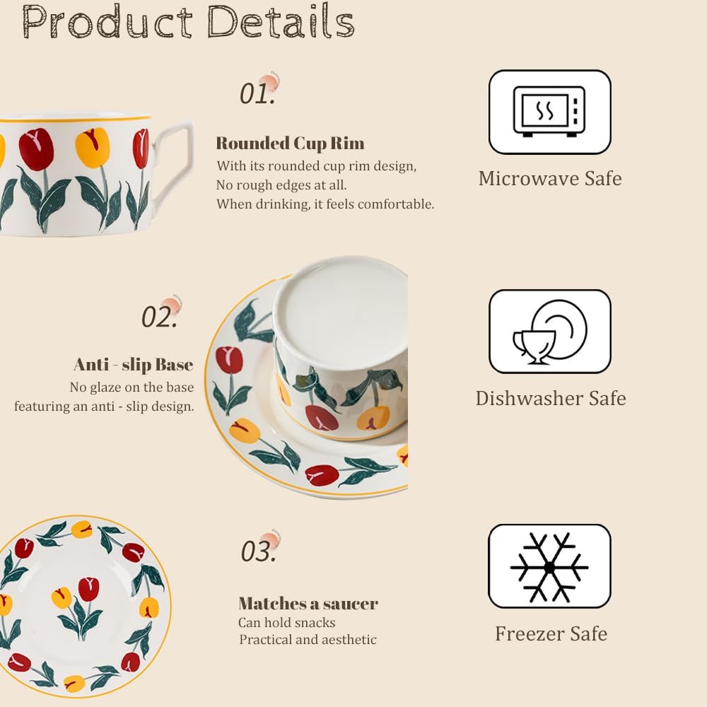 - 【Original Design】Tulip series coffee cup color glaze, classic natural element style which never goes out of fashion. The cup brings the beauty of nature to the table in warm, tranquil ceramic of contemporary. Whether in the kitchen or in the living room, it is a perfect decoration, it can easily match with existing tableware in your kitchen.