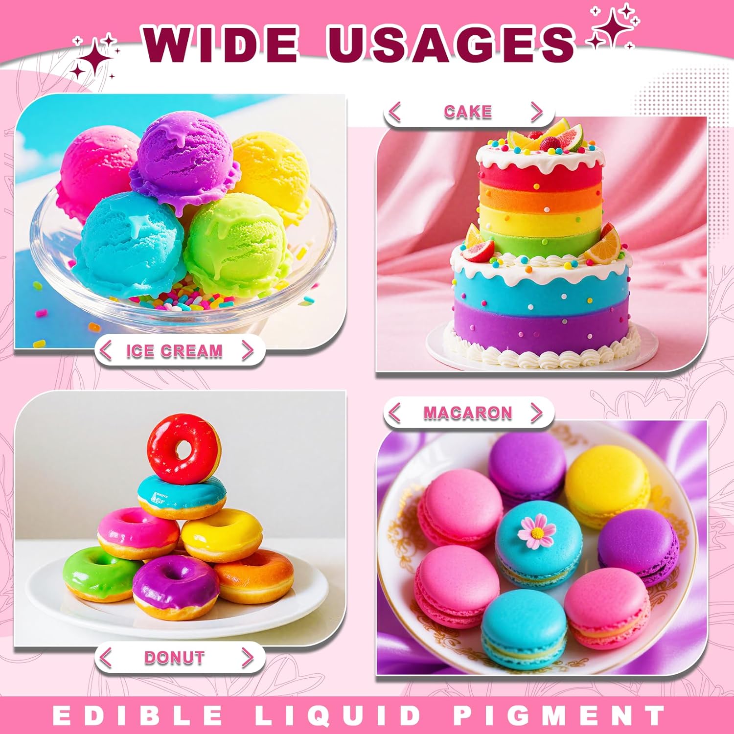 - WIDE RANGE OF APPLICABLE SCENARIOS - Suitable for various baking scenarios such as cake decoration, frosting, fondant, cookies, etc., and can also easily handle a variety of creative uses such as Easter egg dyeing, slime coloring, soap and candle crafts, etc. It is an all-round choice for baking and handicraft enthusiasts.