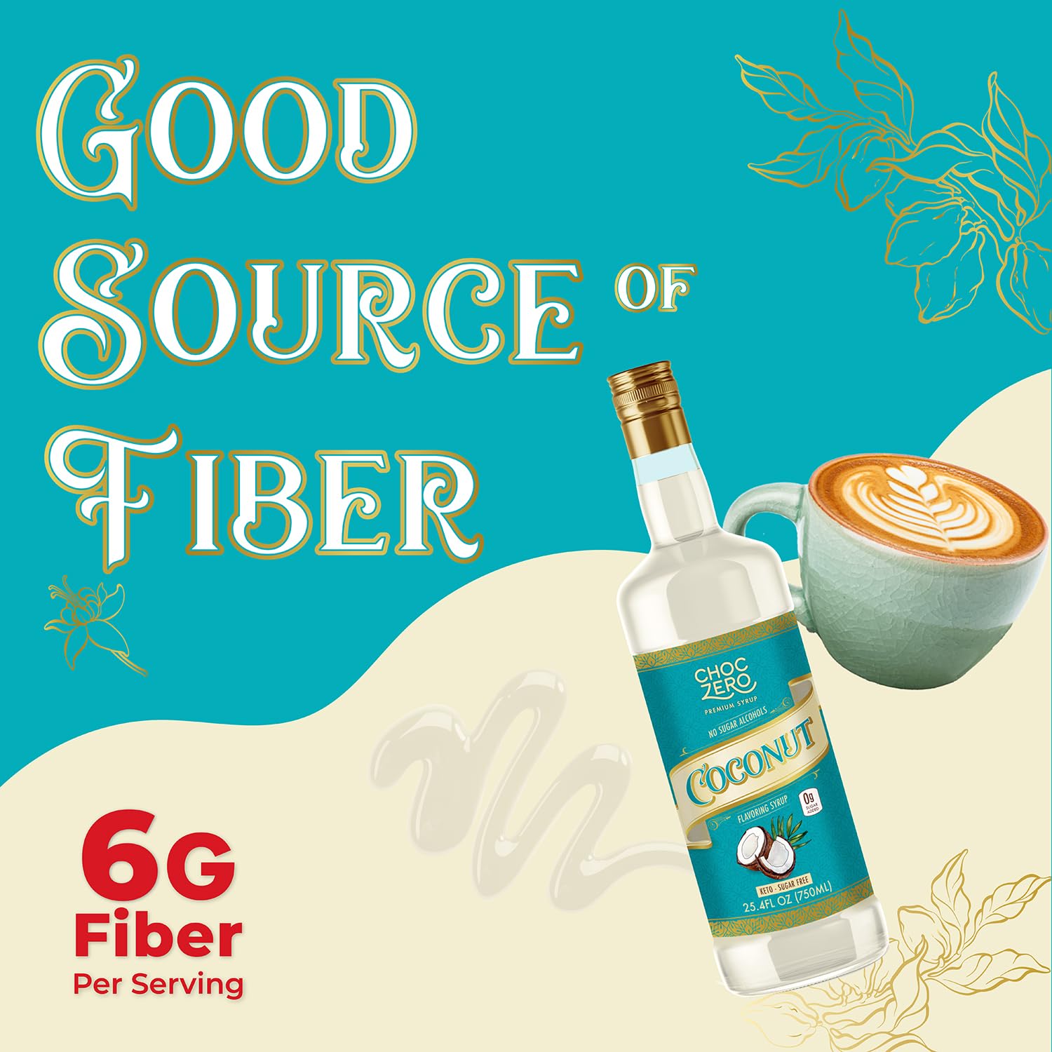 ChocZero Coconut Syrup – Sugar Free Flavoring Syrup for Coffee, Tea & Baking – Keto Friendly, Low Carb, No Sugar Alcohols, Vegan & Gluten Free – 25.4 Fluid Ounces