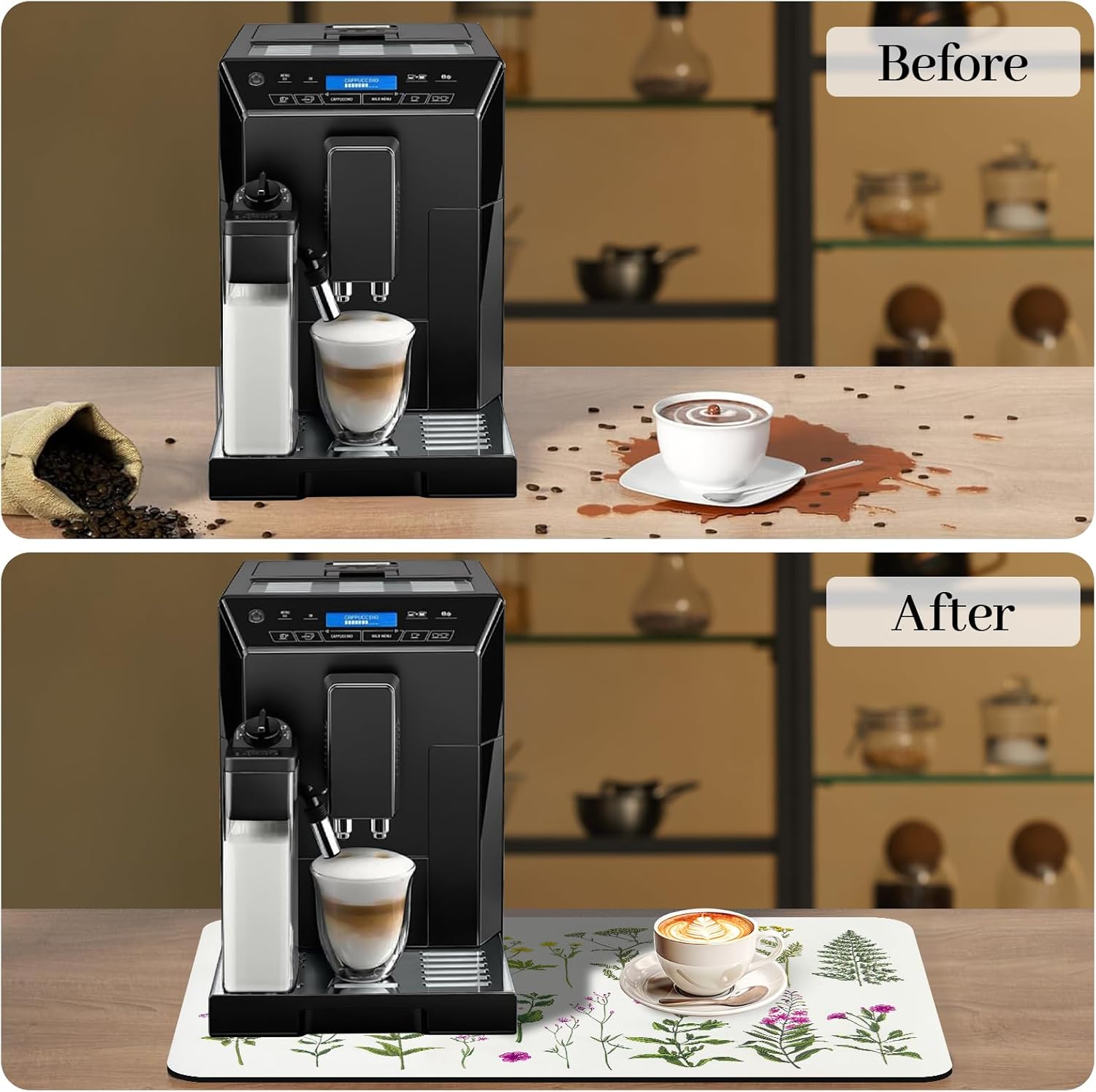 - 【More Scientific Material Design】In addition to its water absorption capacity under normal use, this mat is soft and cushioned, aesthetically pleasing, easy to clean, protects the coffee maker/utensils, and more. To maintain functionality, please clean the mat regularly, hand and machine washable.