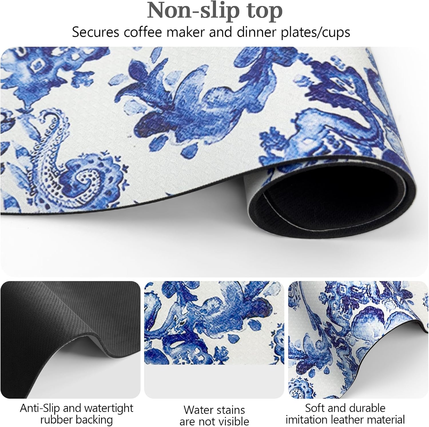 - 【Coffee Maker Mat For Countertops】Keep your coffee maker and countertops clean from spills with a coffee mat. This coffee bar mat protects your kitchen countertop surfaces from coffee splashes or coffee bean stains and can avoid the trouble of cleaning the countertops.