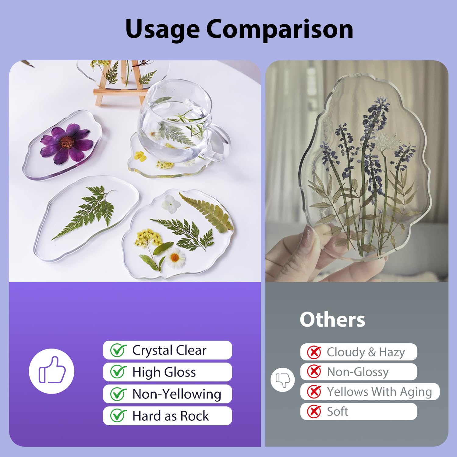 - 【Self-Levelling & Bubble-Free Epoxy Resin】Our clear epoxy resin are made of safe and premium materials, safe and low-odor. Self leveling feature for a smoother, high gloss finish. Compared to other epoxy resins, epoxy resin efficiently releases air and prevents air bubbles, resulting in a flawless, smooth surface, saving your time.