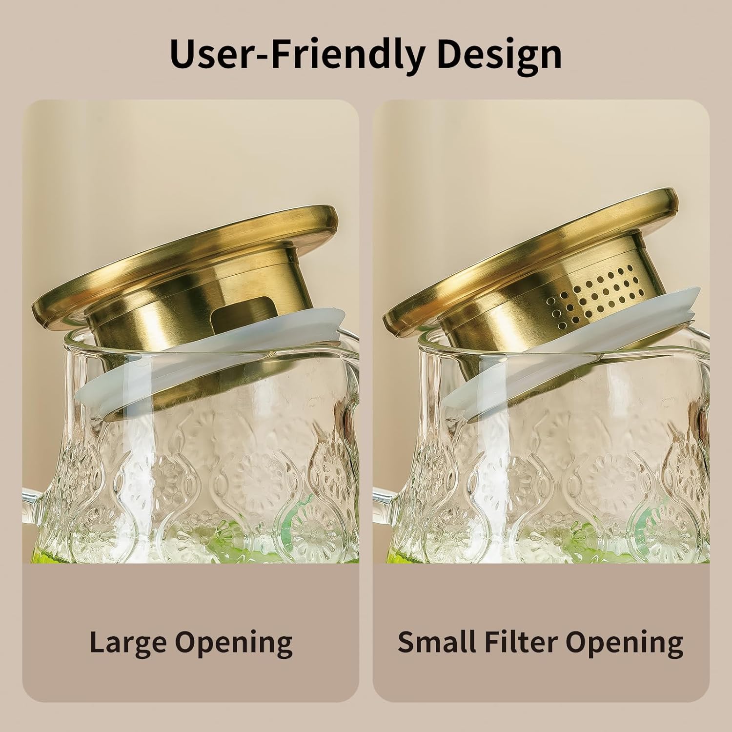 - 【LARGE CAPACITY AND HEAT-RESISTANT】This 68 oz/ 2L Vintage Water Pitcher is large enough to nicely serve for 5-7 people when you have a friends gathering or a family party. And it can be heated directly with an open flame or induction cooker, or placed directly in the refrigerator for cooling and is dishwasher safe!