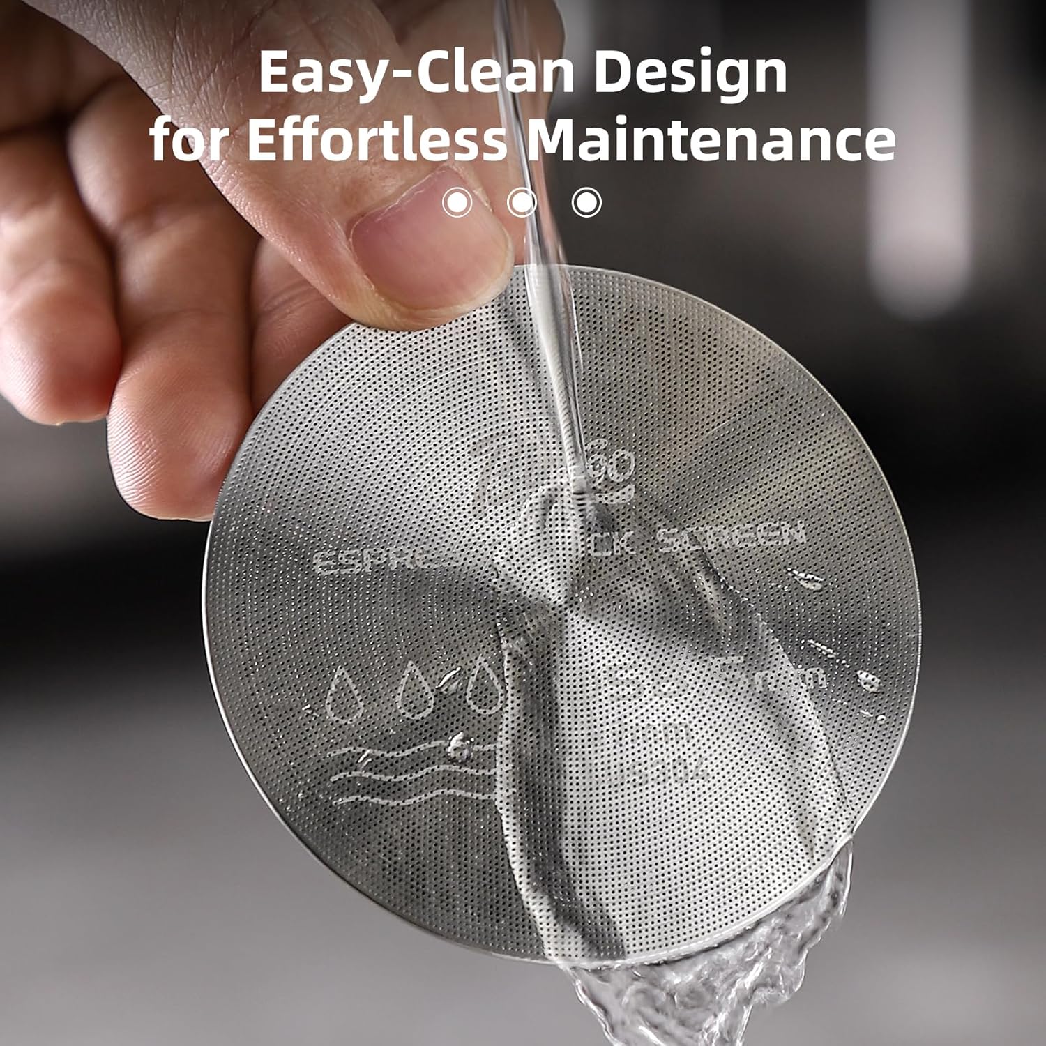 - ✔ UPGRADED BREW PERFORMANCE - 3-Layer Precision Design (1.5mm thick, 150μm micron holes) for smoother, more consistent flow than single-layer screens. Prevents Channeling & Spritzing – Keeps your coffee puck intact for full-flavored, crema-rich espresso.