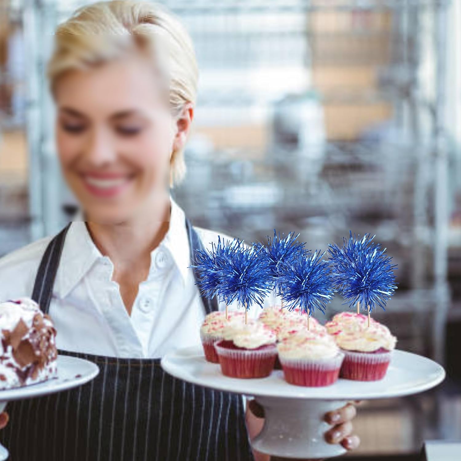 40 PCS Foil Firework Cupcake Toppers Sparkle Tinsel Cupcakae Picks Sparkler Fireworks Party Decorations Cocktail Fruit Toothpick for Birthday Wedding Graduation Party Decorations Supplies Dark Blue