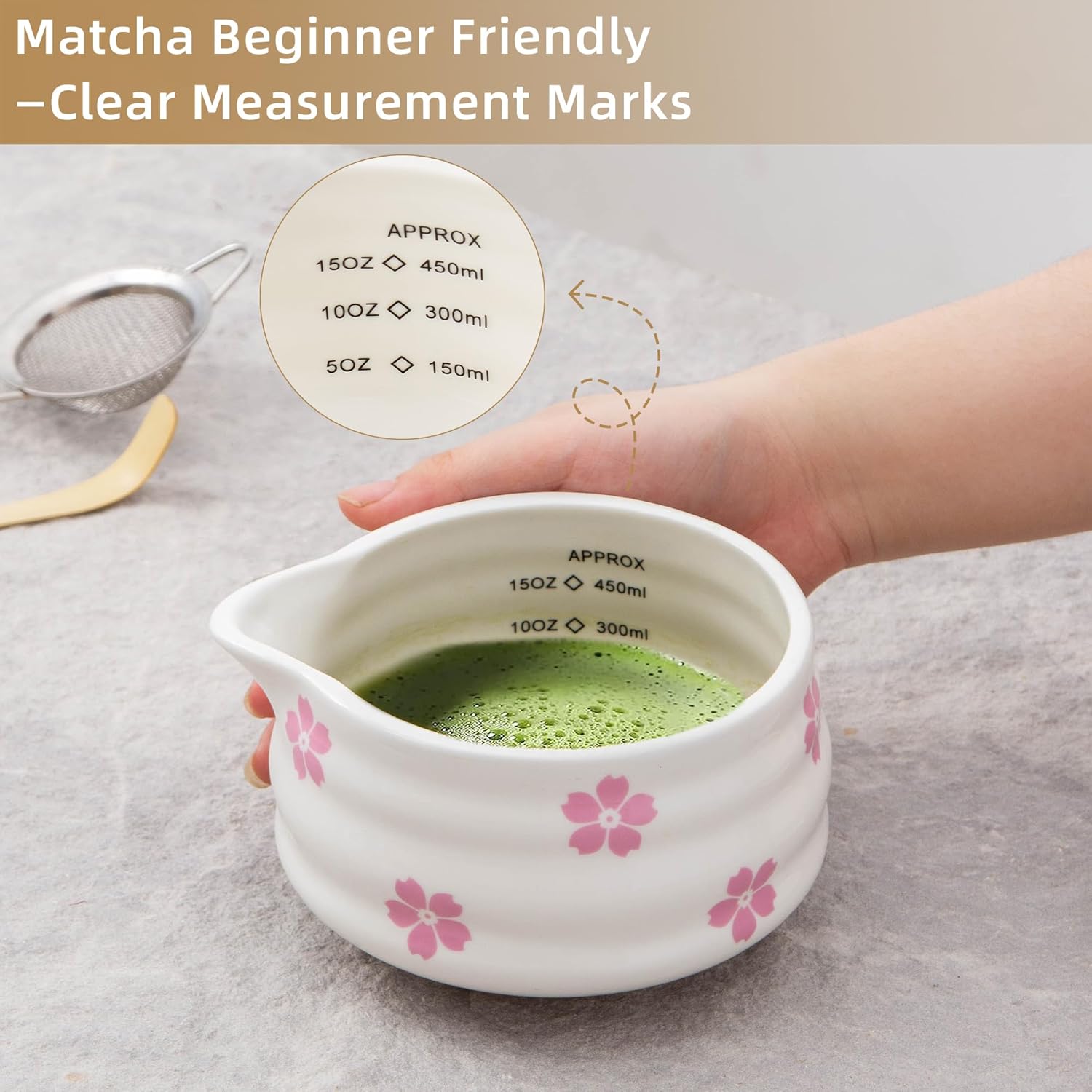 - Beginner-friendly Matcha Bowl: This matcha bowl features clear 5oz/10oz/15oz measurement marks, perfect for beginners crafting creamy lattes or traditional tea ceremonies.