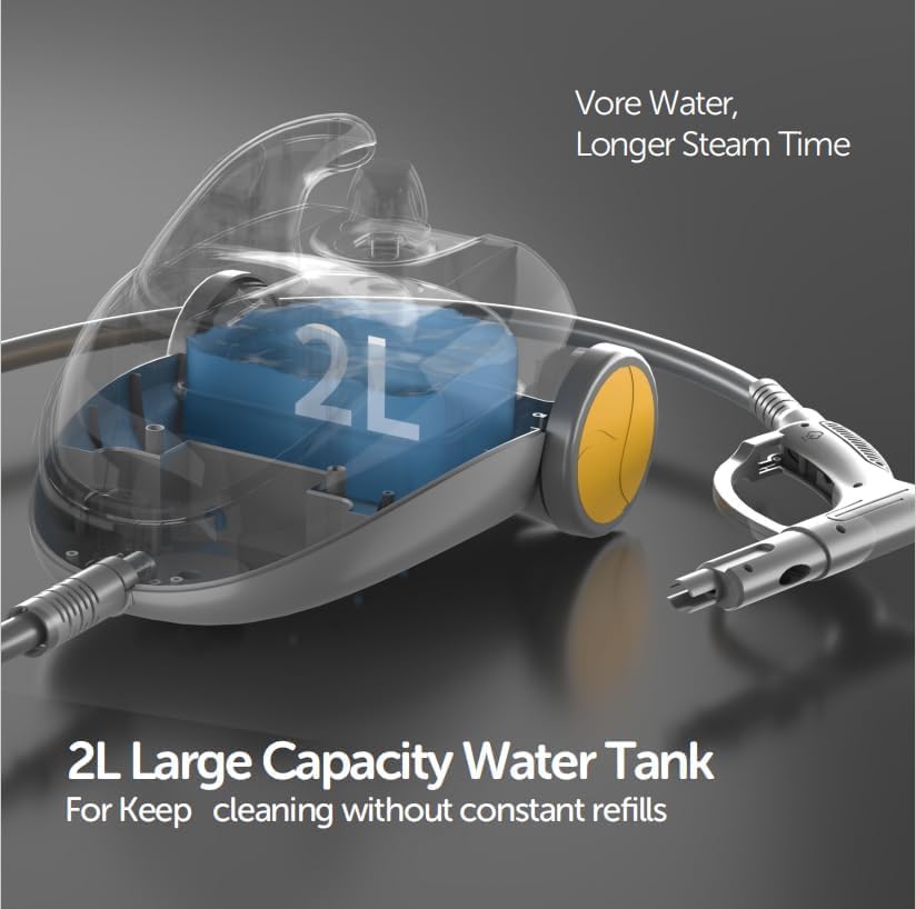 - Large water tank: 2 liters water tank is large enought to support your long cleaning seession, enabling extended deep cleaning sessions without the hassle of frequent refills.