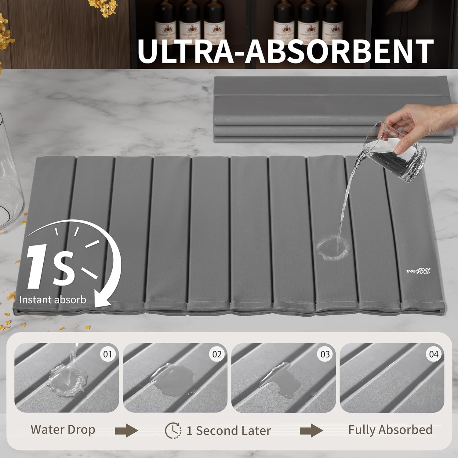 Stone Drying Mat for Kitchen Counter-Super Absorbent PU Dish Drying Mat, Quick Dry Stone Mat Kitchen for Dishes, Bottles & Cups, Large Foldable Stone Dish Drying Mat, Non-Slip Kitchen Mat
