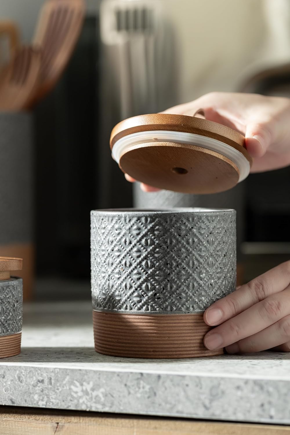 Ceramic Jar with Lid Airtight, Coffee Canister Kitchen Food Storage Jars for Spice Sugar Salt, Coffee Bar Accessories Decorative Container for Countertop - Gray & 42 fl.oz