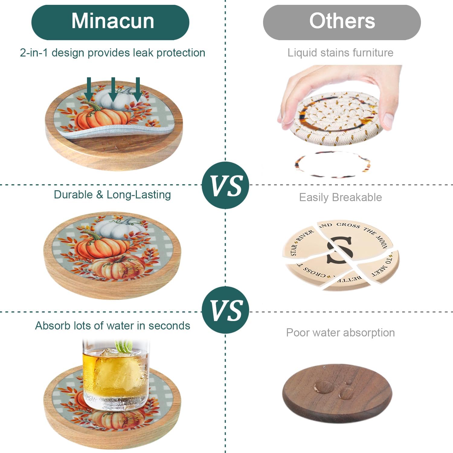 - 🎁Super Absorbent Coasters: Farmhouse coasters with built-in thickened felt pads for stronger water absorption and heat insulation, capture liquids quickly were prevent any spills, keeping your tabletop clean and tidy, with no stains and water rings; extra large size easily accommodates cups of all sizes.