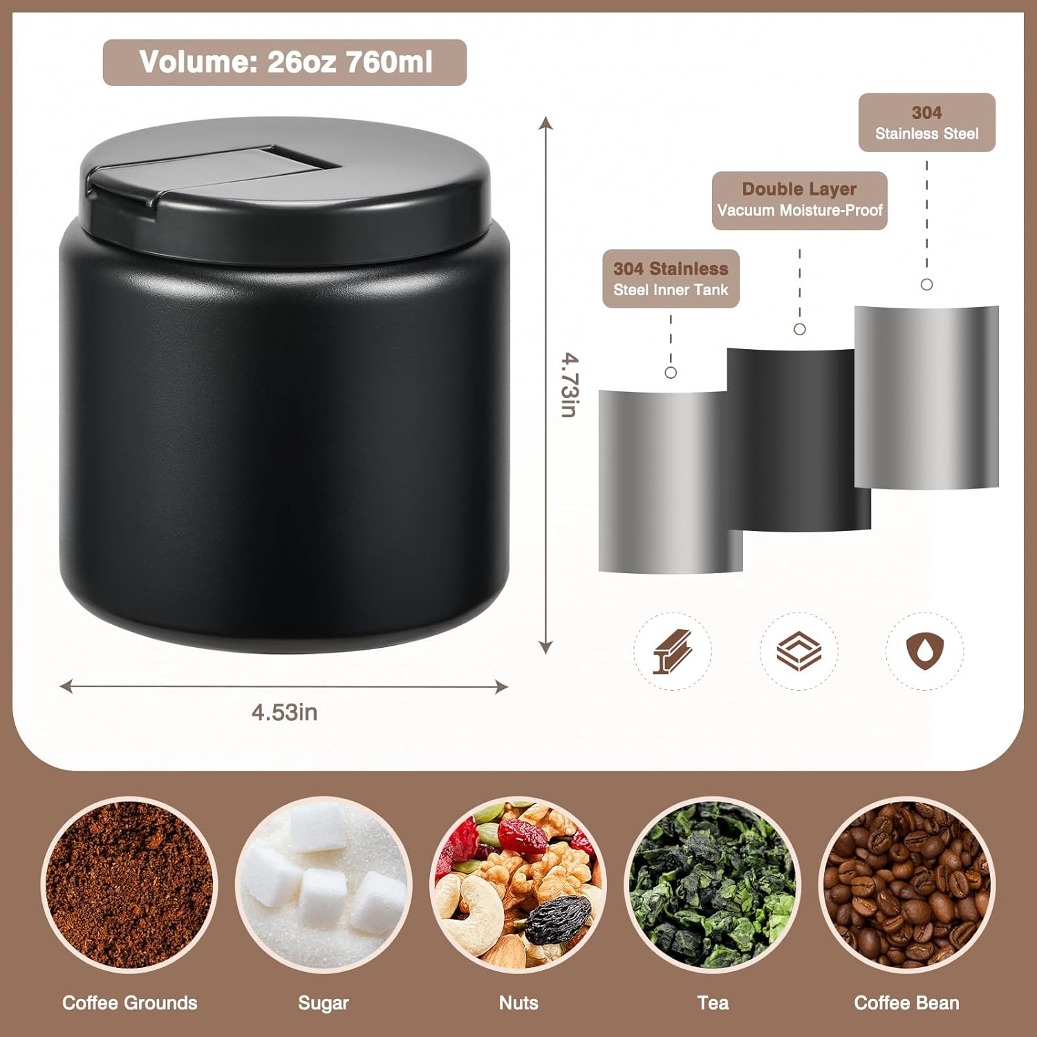 Coffee Canister, Premium Large Stainless Steel Insulated Vacuum Coffee Bean Storage Container Travel Jar, Kitchen Food Airtight Coffee Grounds Container for Tea, Sugar, Flour (26oz-Black)
