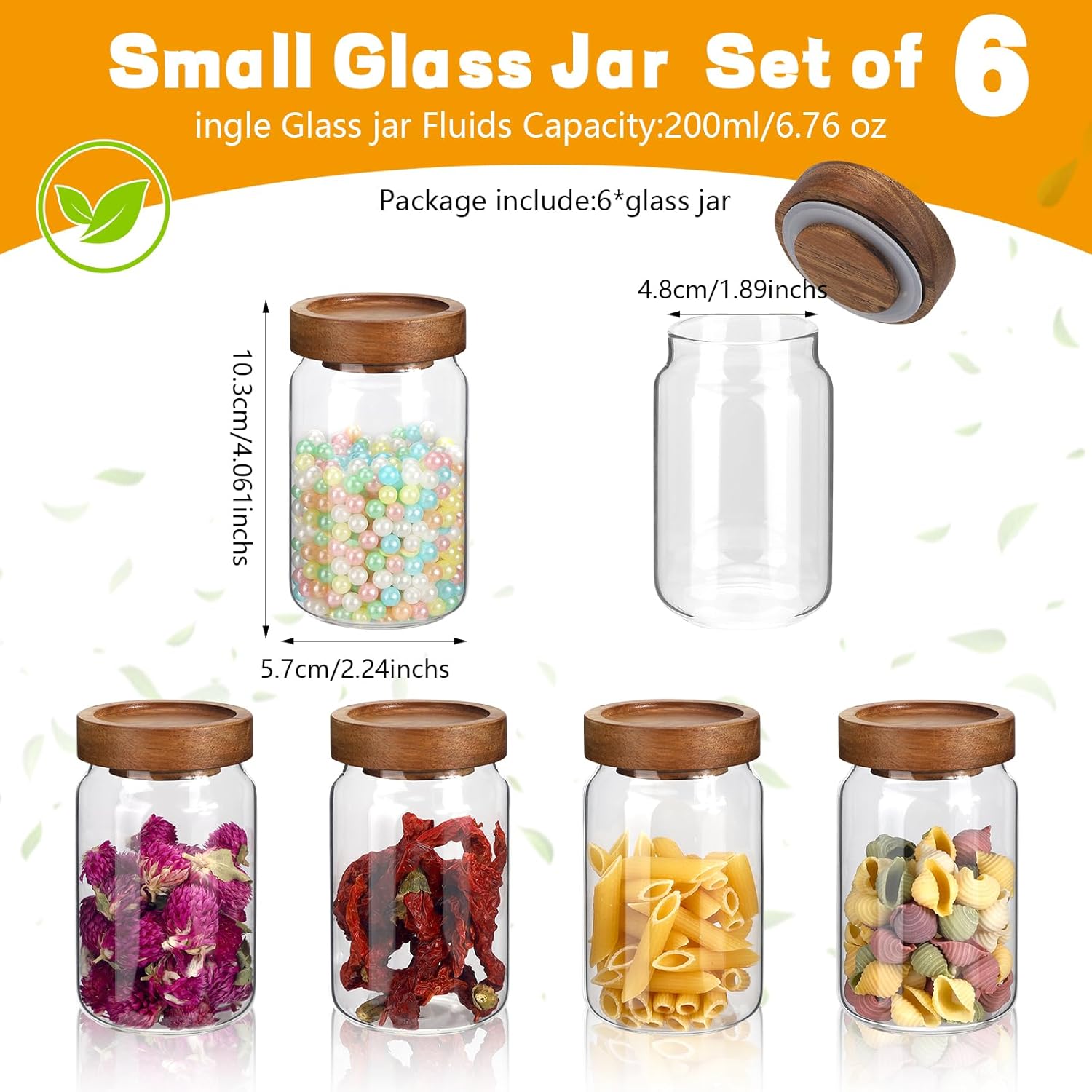 Small Glass Jars with Airtight Lid Spice Jar Round Food Storage Canister Clear Glass Seasoning Containers Jar for Pantry Sugar Tea Coffee Bean Spice Nuts Cookies Bath Salts (6 * 200ml(6.76oz))