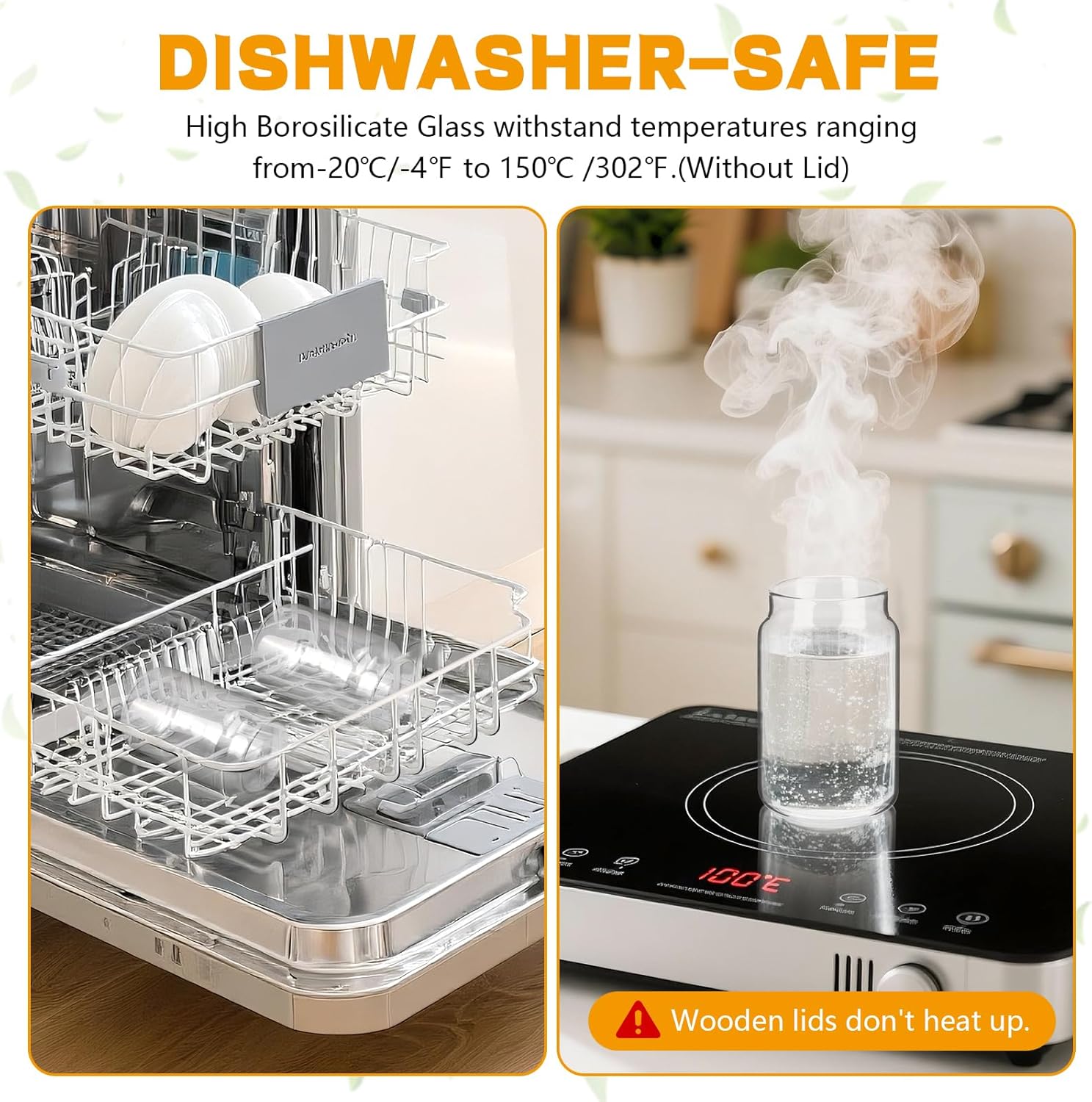 - 【MATERIAL & QUALITY】: Small Glass jars made of high-borosilicate glass With the advantages of high temperature and low temperature resistance,Can burn directly on induction cooktop, withstand temperature range 150℃ /302°F to -20℃/-4°F( wood Lid can not be covered, if in a hot environment.)Glass food storage containers with lids can be used in the refrigerator .