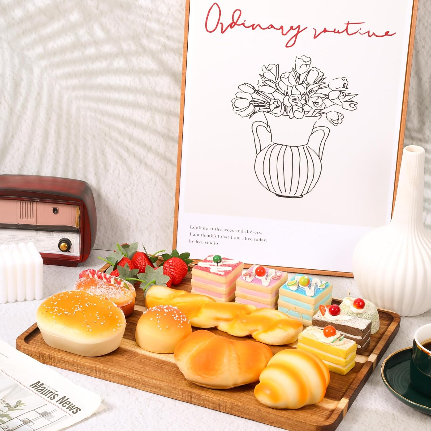 2 PCS 16 x 12 in Large Solid Acacia Rectangular Wood Serving Trays Natural Wooden Boards Serving Platters for Bar Coffee Party Dessert Tray
