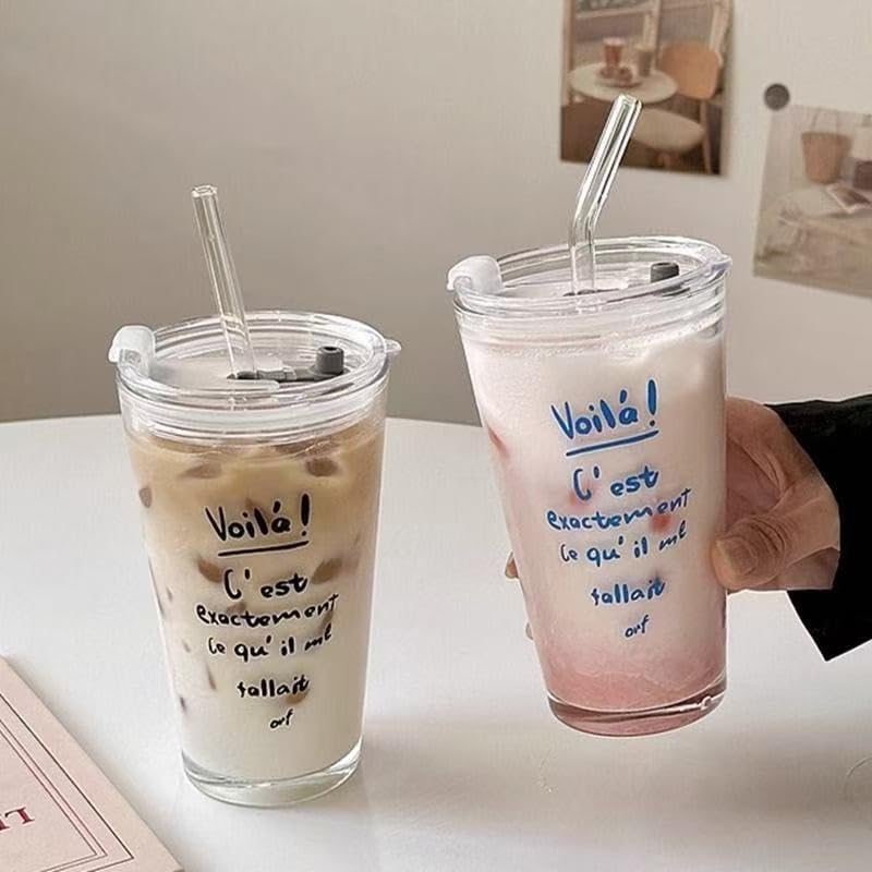 16 Pack Reusable Glass Straws,SIZE(8.5''x10 MM),Set of 6 Straight and 6 Bent with 4 Cleaning Brush,Perfect for Smoothies,Tea, Juice