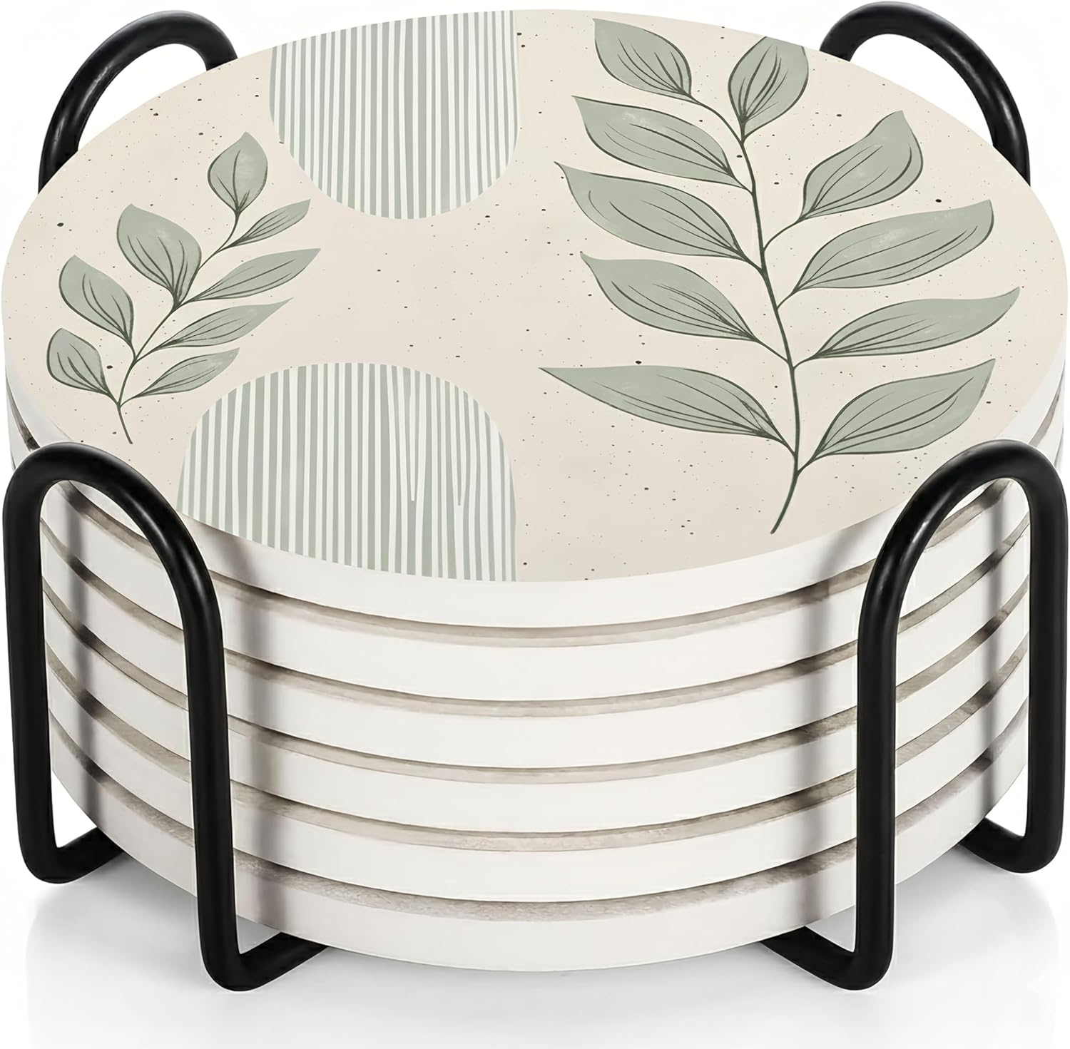 - ABSORBENT CERAMIC STONE: VEYRO coasters for drinks are crafted from premium ceramic that is naturally absorbent, gently drawing in water rings and condensation before they touch your surfaces. Designed with balance and precision, they keep your coffee tables and desks spotless — so every sip feels calm, effortless, and beautifully in place. Perfectly sized for mugs, tumblers, wine glasses, and even vases or small planters.