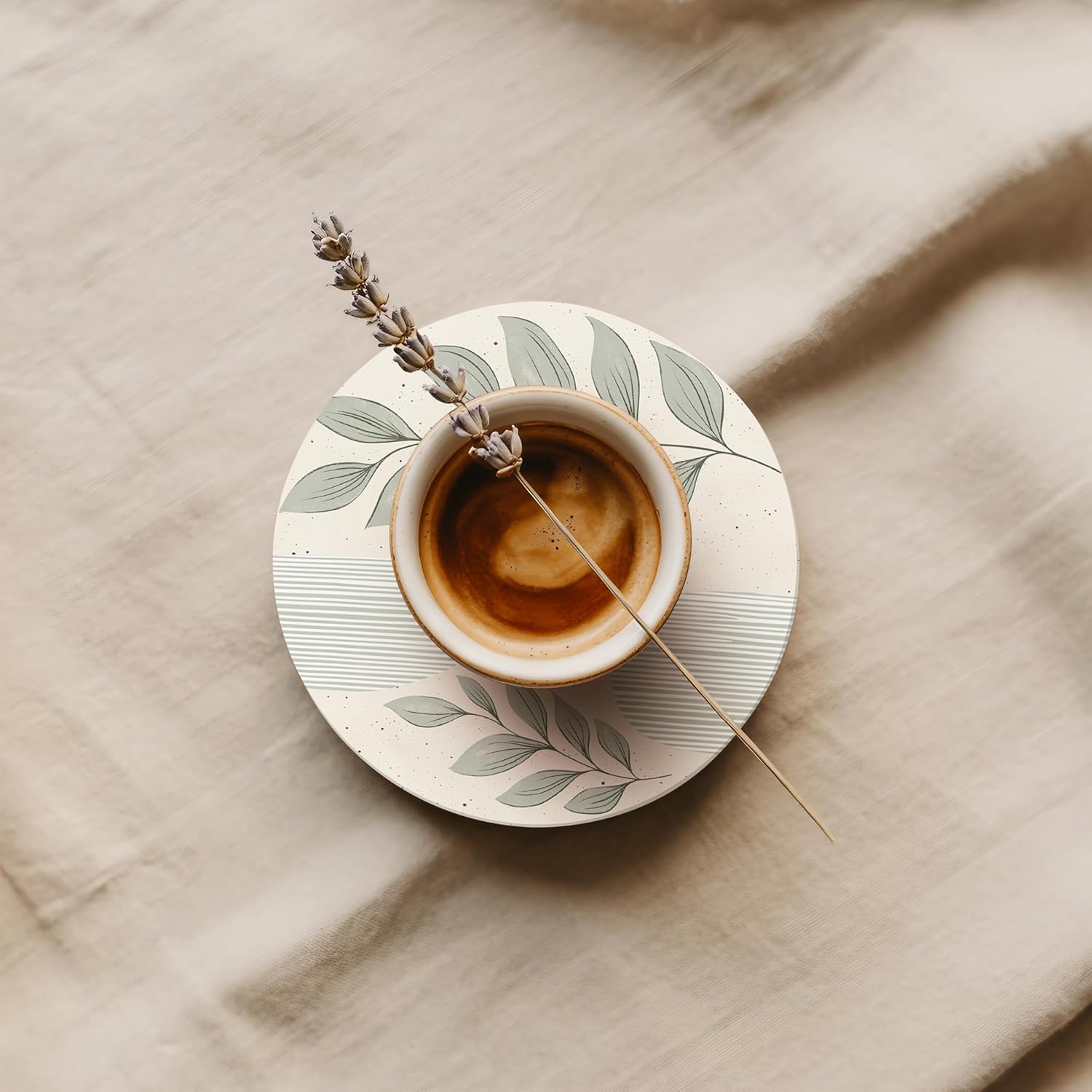 - CORK BASE – NO SLIDE, NO SCRATCH: Each coaster is backed with natural cork to prevent slipping and protect tables from scratches, keeping every surface safe and cared for. The solid ceramic adds a refined weight, so they stay steady with each use — no clatter, no wobble, just quiet stability. Designed for harmony in everyday living, they rest smoothly on wood, marble, or glass while preserving the calm aesthetic of your space.
