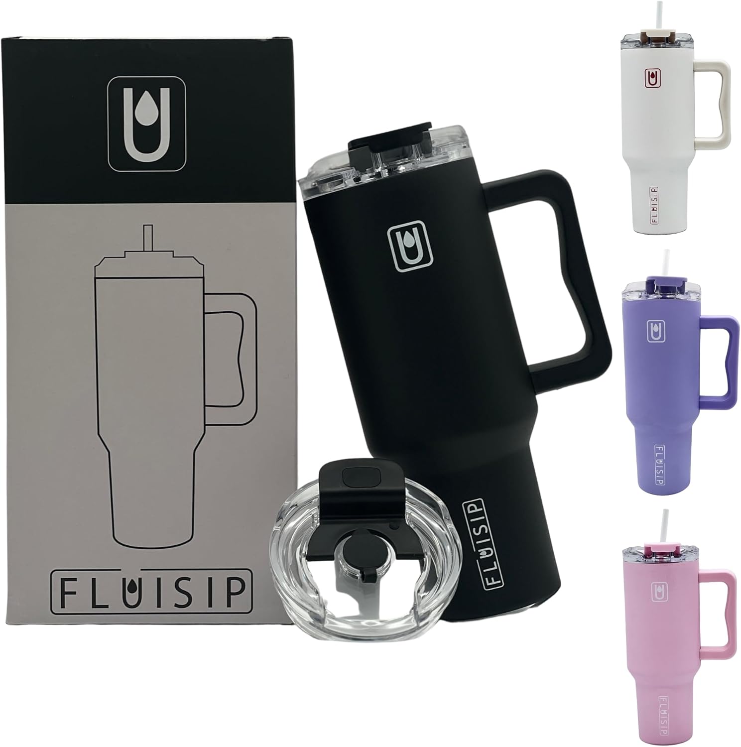 40 oz Insulated Tumbler with Handle, Stainless Steel, Leakproof Lid and Straw, Cup Holder Friendly (Black)
