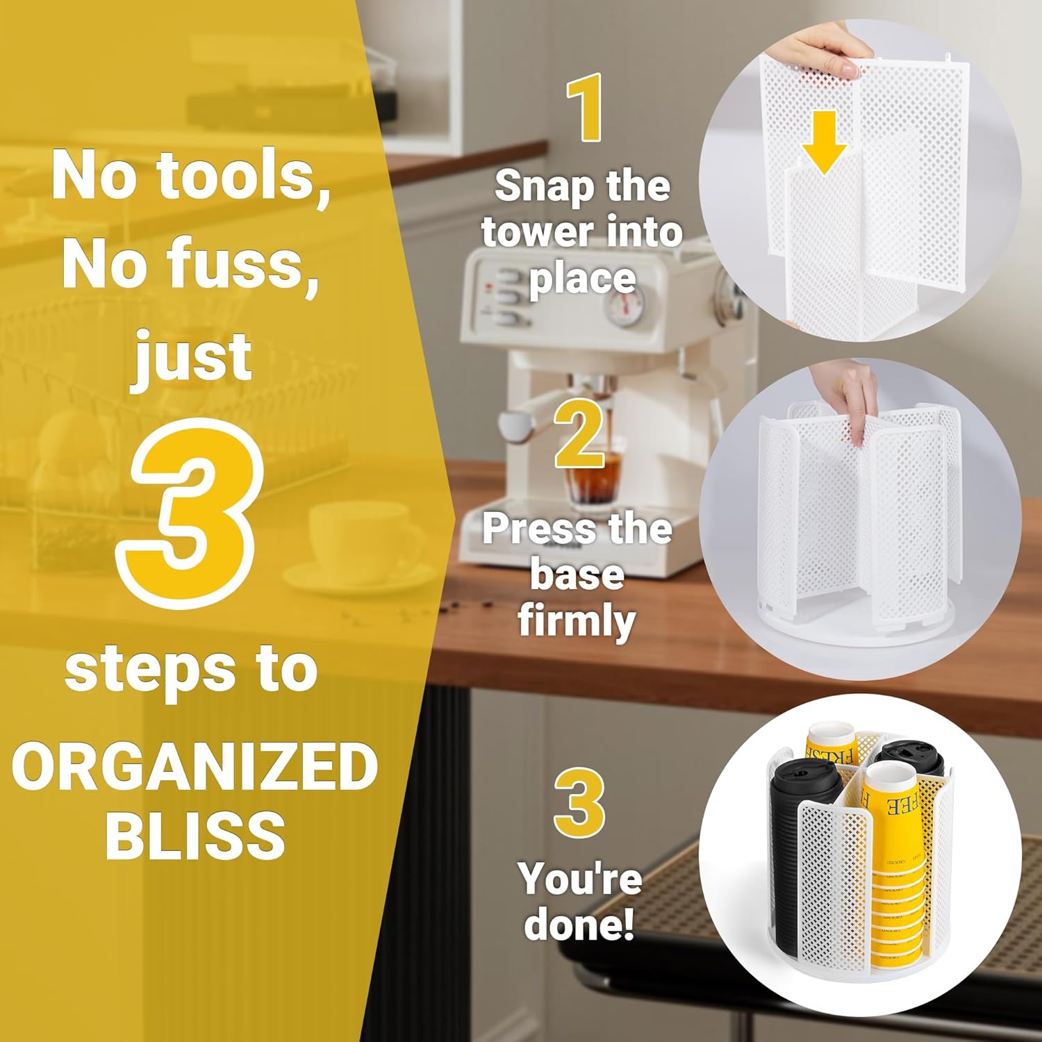 - Effortless 360° Rotation: Smooth-spinning tray provides instant, one-handed access to cups and lids in this coffee cup dispenser
