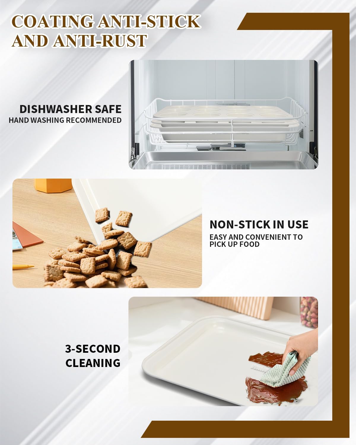 - EASY STORAGE – Features stackable baking pan set design (under 5-inch height) for space-saving cabinet storage; dishwasher-safe for quick cleaning (hand wash recommended for longevity)