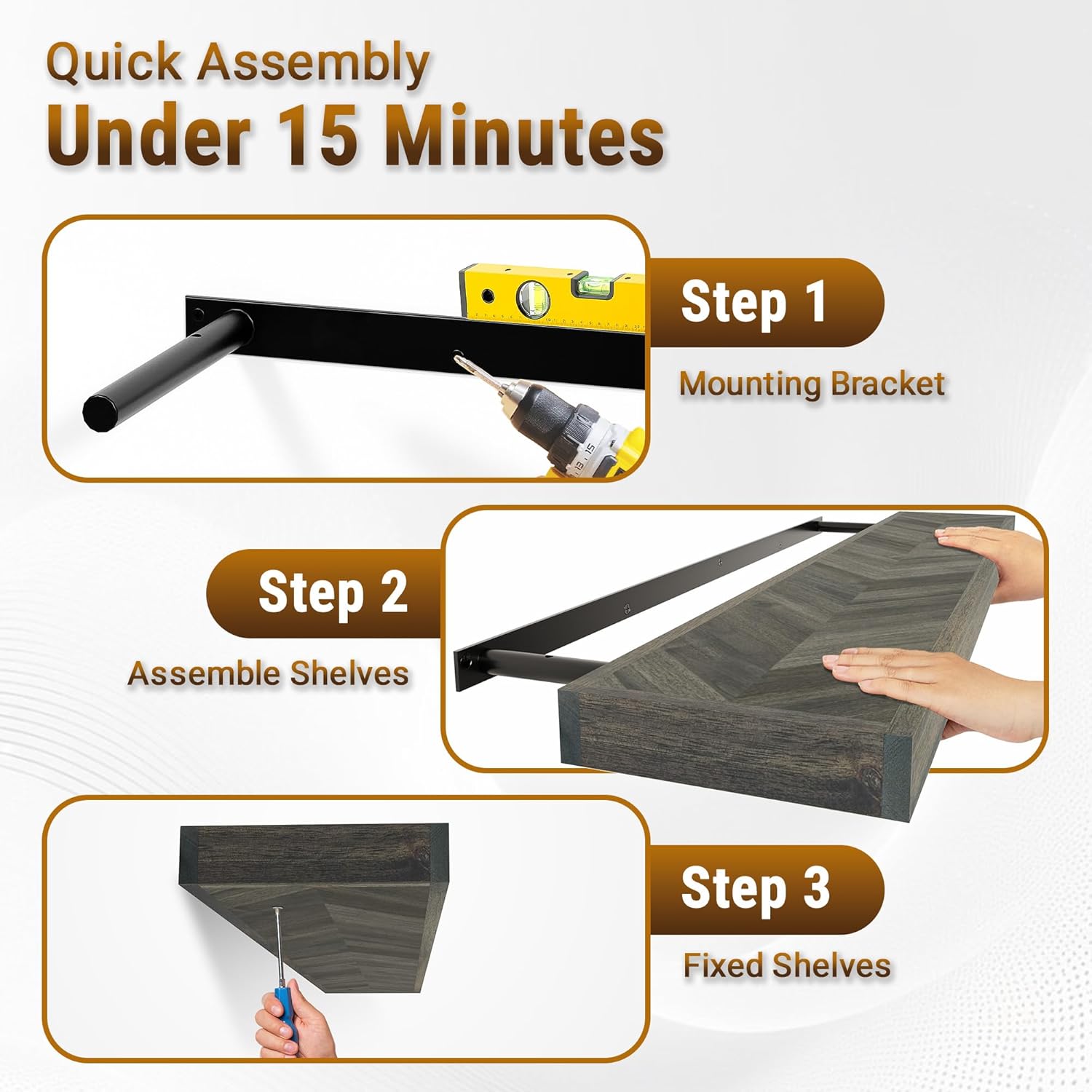 - ✅[𝐏𝐫𝐞𝐦𝐢𝐮𝐦 𝟏.𝟓" 𝐀𝐜𝐚𝐜𝐢𝐚 𝐖𝐨𝐨𝐝]: Made from 100% acacia wood with a striking chevron finish, these shelves boast exceptional durability and timeless design to complement any decor.