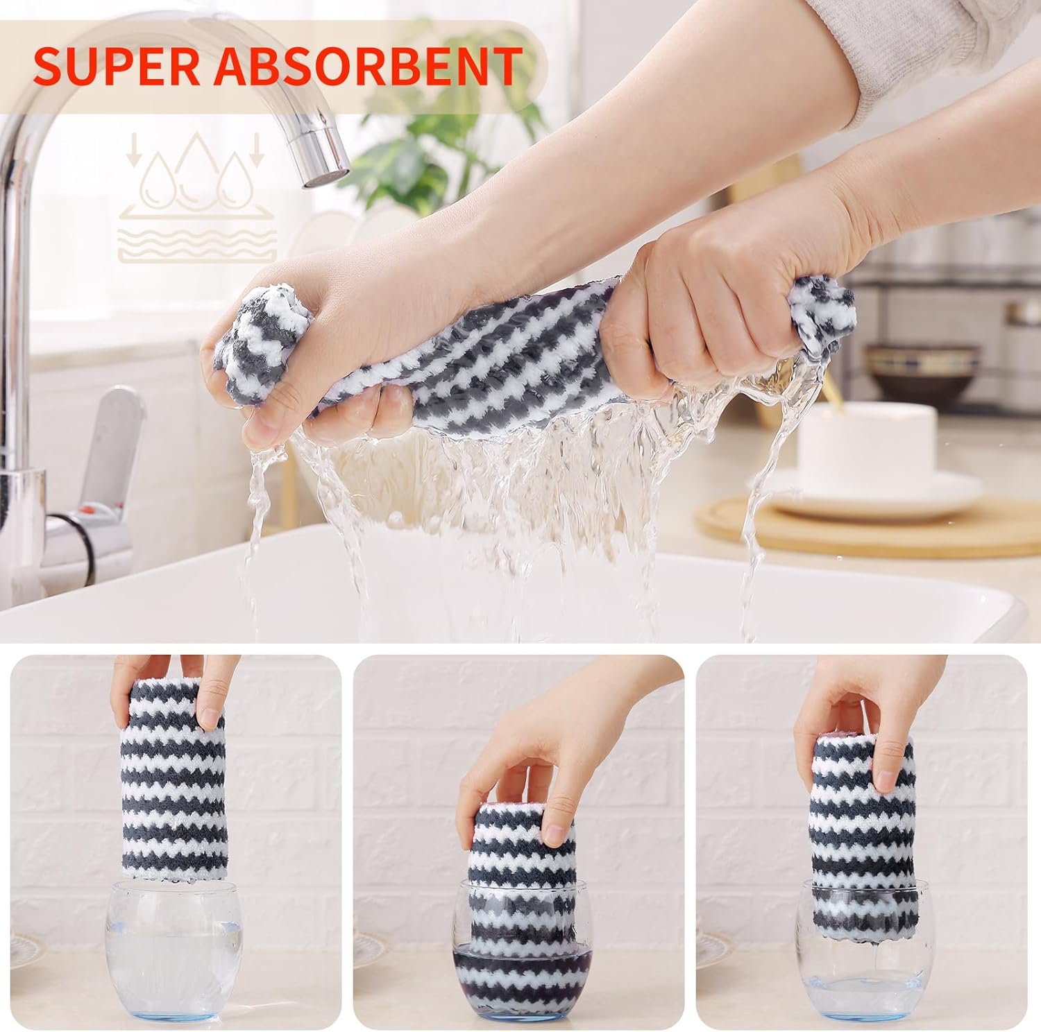 - Super soft and Absorbent: Experience the luxurious softness of our dish towels. They are crafted with high-quality materials which feels soft and won't scratch your hands or any surfaces. Strong water absorption, easily absorb liquid and overflow, make the surface clean and dry.