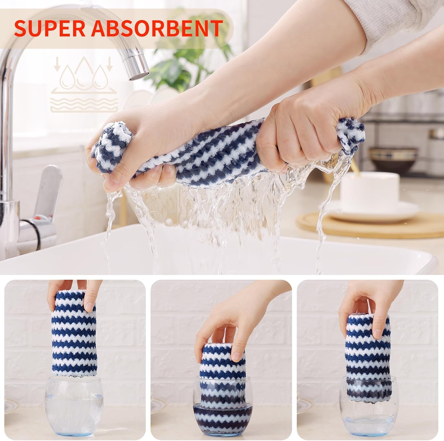 Homaxy 18 Pack Kitchen Dish Cloths, Ultra Soft and Absorbent Dish Towels, Reusable Fast Drying Microfiber Cleaning Cloth, Coral Velvet Wave Design No-lint, 10 x 10 inches, Navy Blue