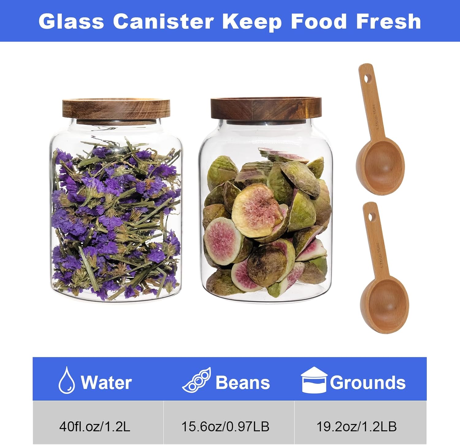 - ★ GRAEAT GIFT: Coffee storage jar with wood scoop,food grade silicone sealing ring, high borosilicate glass. Acacia Lid and silicone sealing ring keep air out, creating an airtight environment to keep contents dry. Non-toxic and dishwasher safe, hand wash recommended.Nice gift for Coffee lover, barista,family,friend,as a holiday gift.