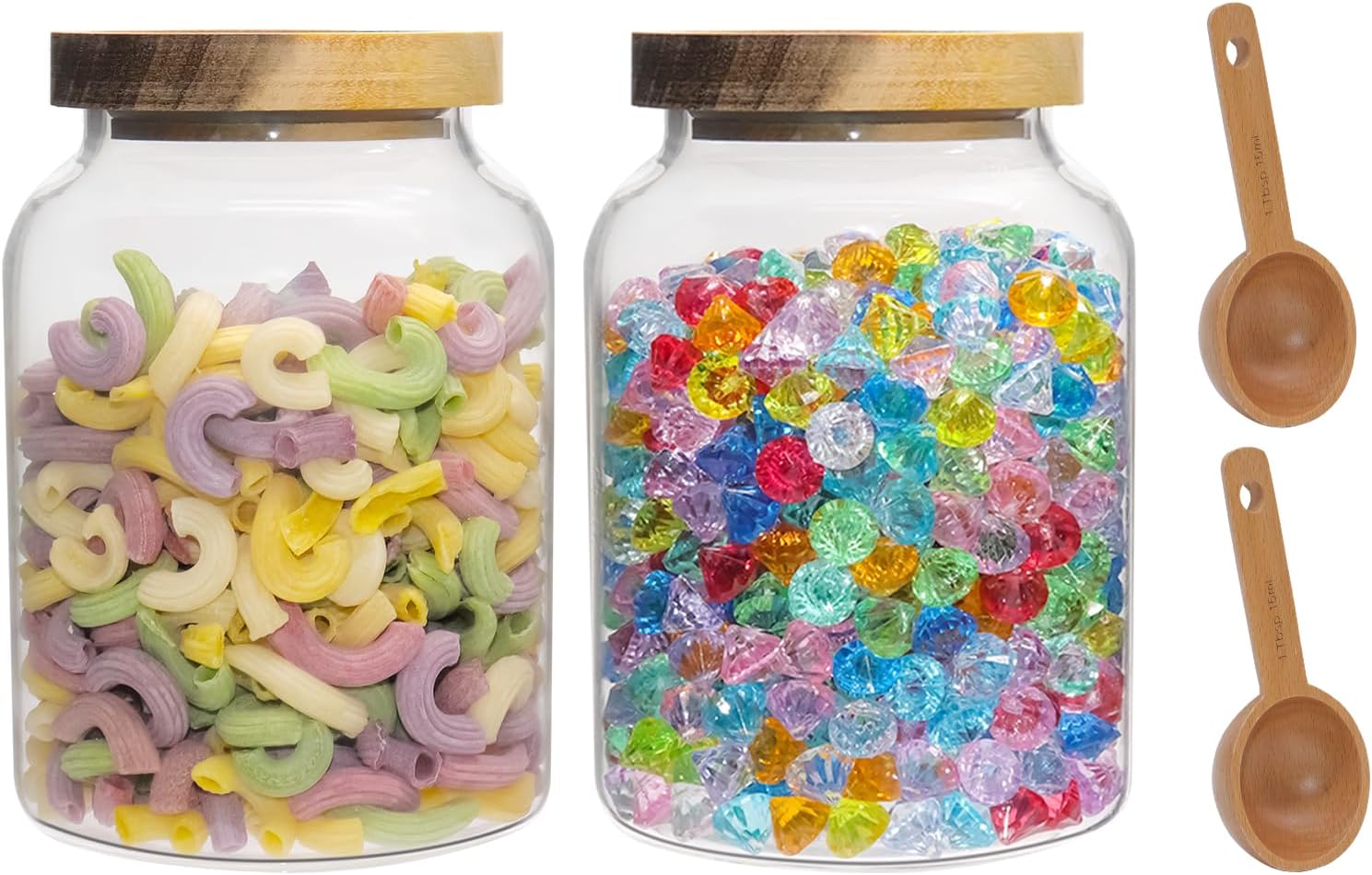 - ★SIZE&AlMIGHTY USE:Large Capacity:Large glass containers with lids spoon perfect for storing and preserving a variety of ingredients including pasta, ground coffee,cookies,dried beans, pepper, jams, chutneys, rice, sugar, flour, tea, coffee beans, spices, biscuits, candy,cheese,flour, sugar, seeds,nut,cashew,Grains, Flour,etc. Keep your space tidy and safe,saving space and convenient .