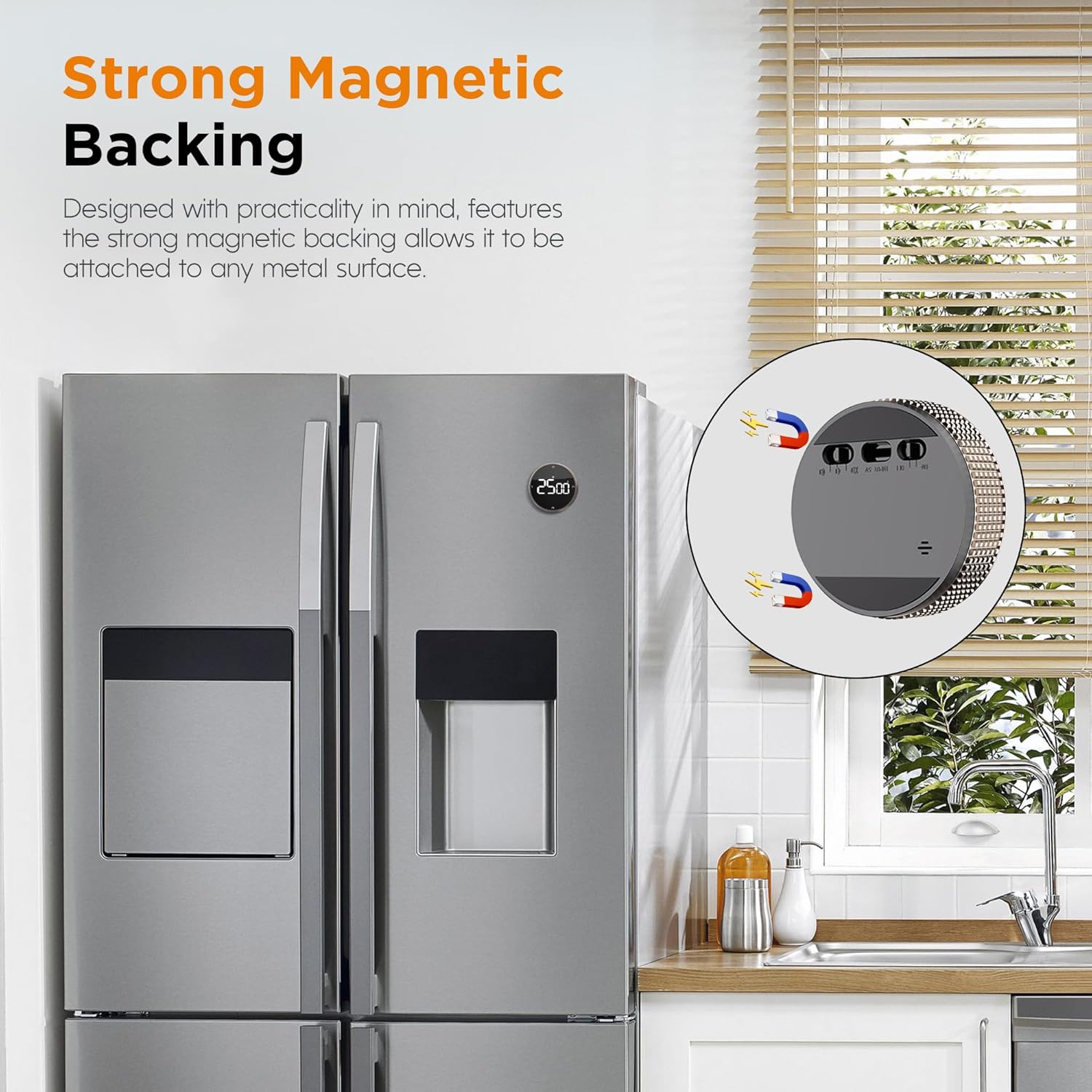 - 【Strong Magnetic Backing】Sticks securely to fridges, ovens, or whiteboards with upgraded magnets. No need to detach for adjustments – perfect for busy hands.