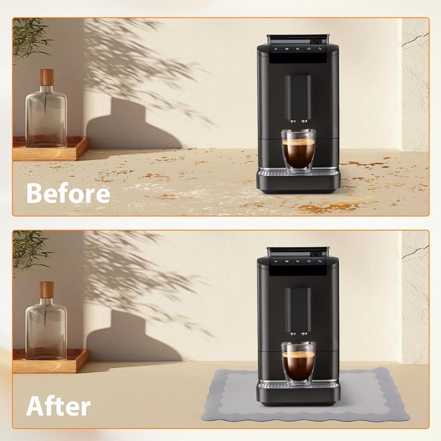 - Two Sizes: There are two sizes of coffee bar mat for your kitchen. 12"x 19" and 16"x24" suited for your kitchen counter, dish racks, coffee station and dining table and bathroom well