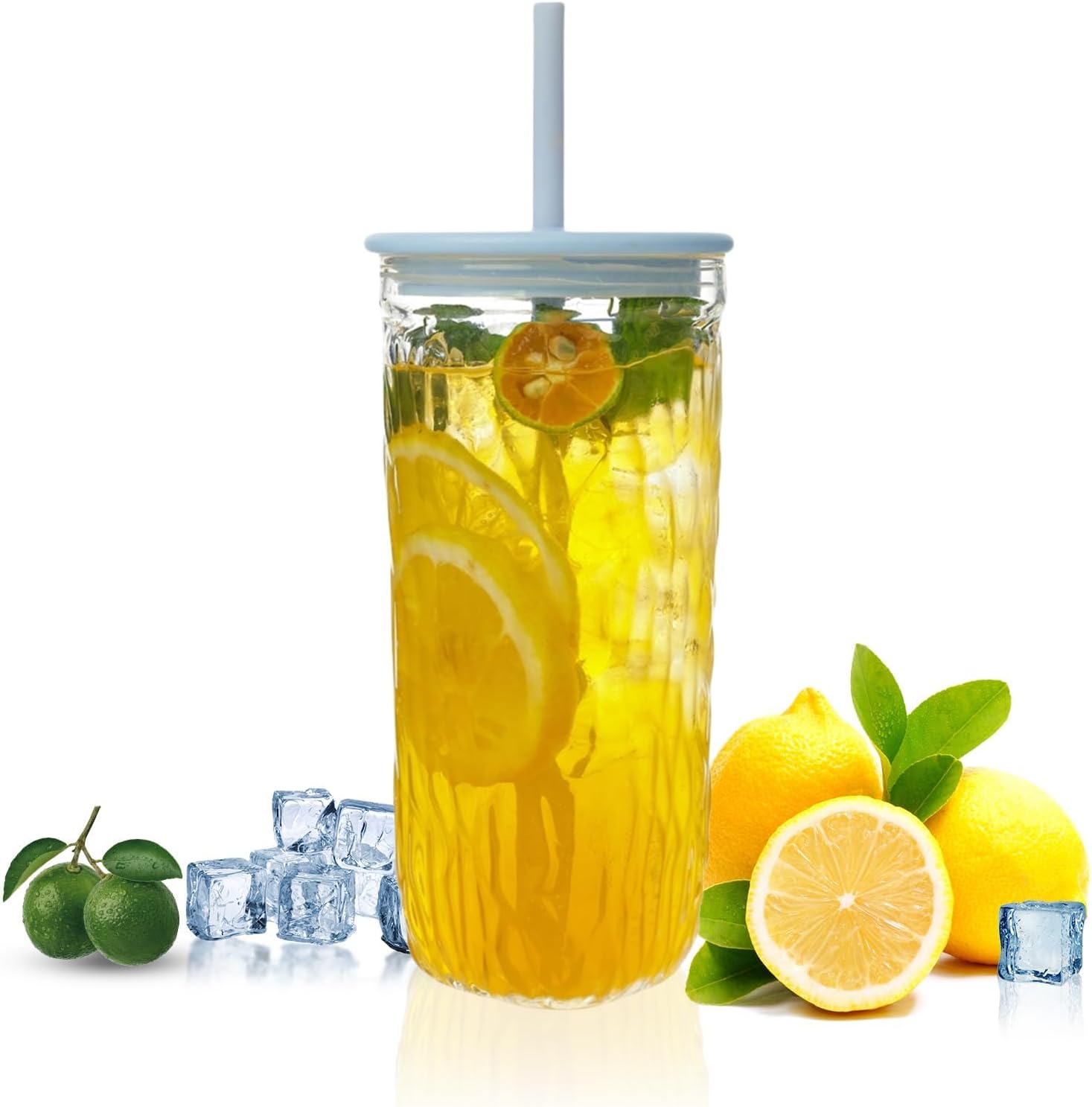 - 5.Perfect For Daily Use: Great for iced tea, coffee, smoothies, or fruit-infused water; includes one glass tumbler with matching lid and straw