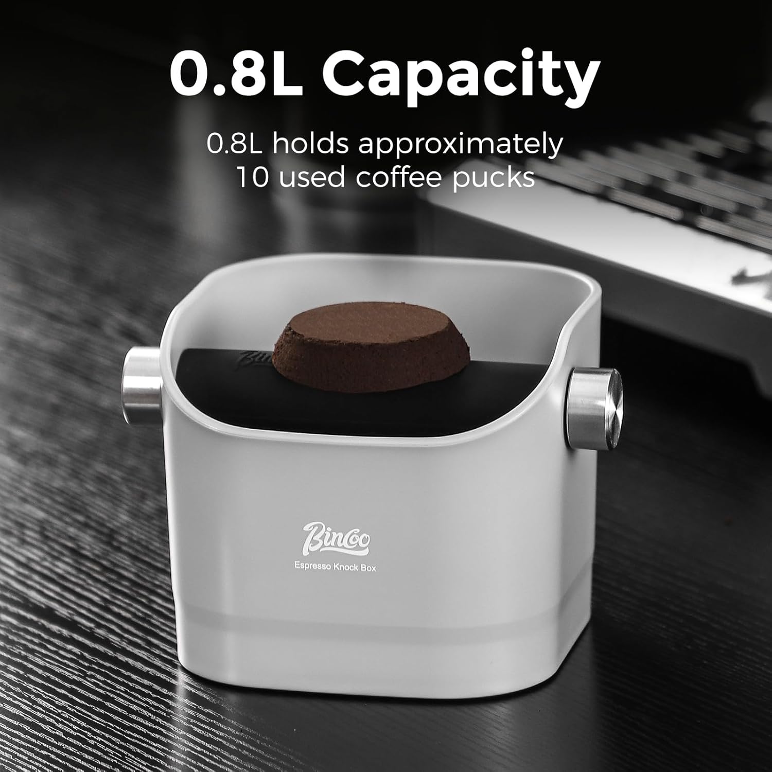 - Generous 0.8L Capacity – Holds up to 10 espresso puck residues, reducing frequent emptying and keeping your countertop clean.