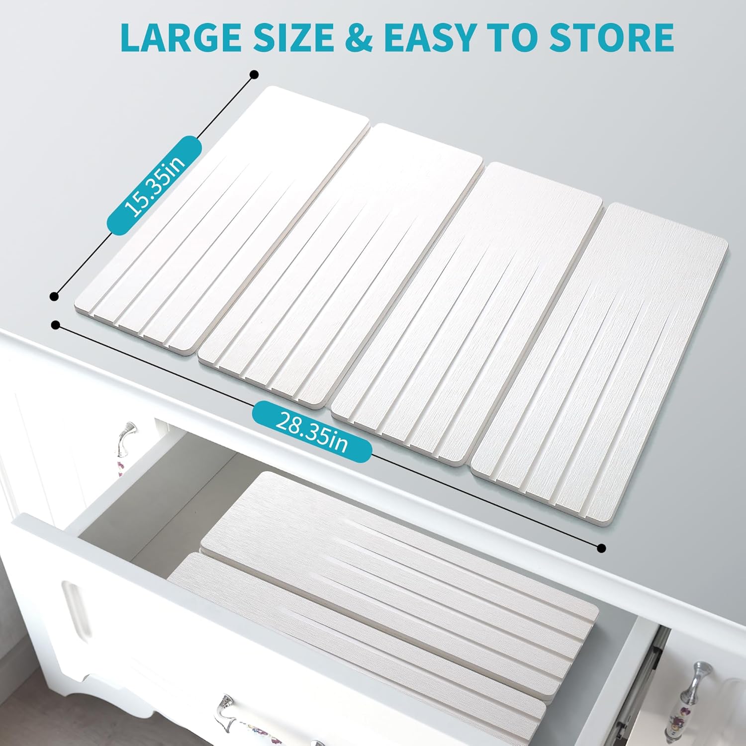 Extral Large Quick Dry Stone Drying Mat for Kitchen Counter,28x16 Inch Collapsible Eco-Friendly Absorbent Diatomaceous Earth Mat for Dishes Cups (White-Upgraded Version, 16x12 inch)